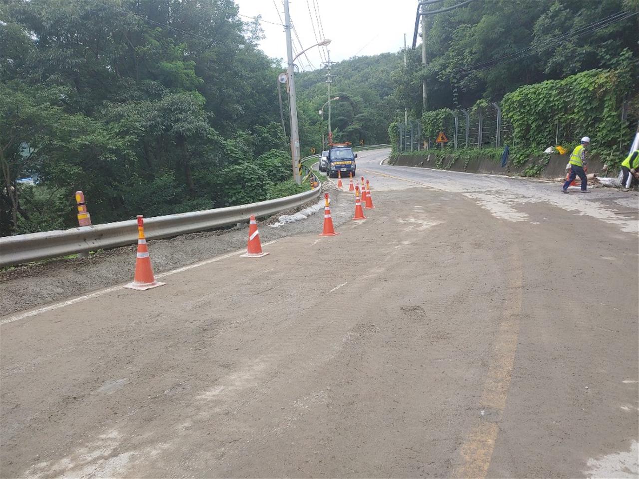곱등고개(국지도57호선) 피해복구 조치결과 김경순 기자 2020-08-04 22:39 가 본문내용 확대/축소 본문 곱등고개(국지도57호선) 피해복구 조치결과곱등고개(국지도57호선) 피해복구 조치결과 차량통제 현황 (인명 피해 없음) ❍ 통제일시 : ‘20. 8. 2.(일) 17:00 ~ 8.4.(화) 18:00(예정) ❍ 통제대상 : 국지도57호선(곱등고개) ❍ 통제사유 : 집중호우에 따른 도로유실 등으로 인한 통제 ❍ 통제구간 : 석유공사입구삼거리 ~ 헌산중학교입구교차로(L=3.3km) □ 응급복구 조치결과 (8. 4. 16시 기준) ❍ 투입인력 : 총 25명(공무원 10명, 연간단가 등 15명) ❍ 투입장비 : 9대(기중기 1, 굴삭기 2, 덤프 6 ) (조치완료) 톤마대, 배수로 설치 완료/ 도로임시 포장완료 ☞ 現 시범 운행 및 합동 점검 실시 후 18시 개통 예정 □ 개통 전·후 조치사항 ❍ 개통시간에 맞춰 재난문자 송출 ❍ 국지도57호선, 지방도318호선의 버스회사 통보(대중교통과) ❍ 인터넷, 영상 등으로 금일 중 개통을 시민에게 홍보 ❍ 개통 후 관할 읍·면·동에 예찰활동 철저 통보 용인시 공무원이 교대로 길 통제하고 철저하게 함으로 2차적 피해가 없었다. 출최근길에 세찬빗속에도 온소 안전을 위해서 안전 관리하는 공무원들에게 시민들은 안전을 느꼈다고 입을 모은다. 좋아요 0 싫어요 0 김경순 기자 기자의 다른기사 보기 목록 댓글목록 이전글 용인시의회, 백암면 등 수해 복구 현장 방문 20.08.04 다음글 “원삼·백암면 일대 특별재난지역 선포 건의” 20.08.04