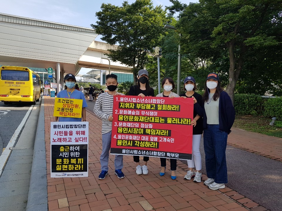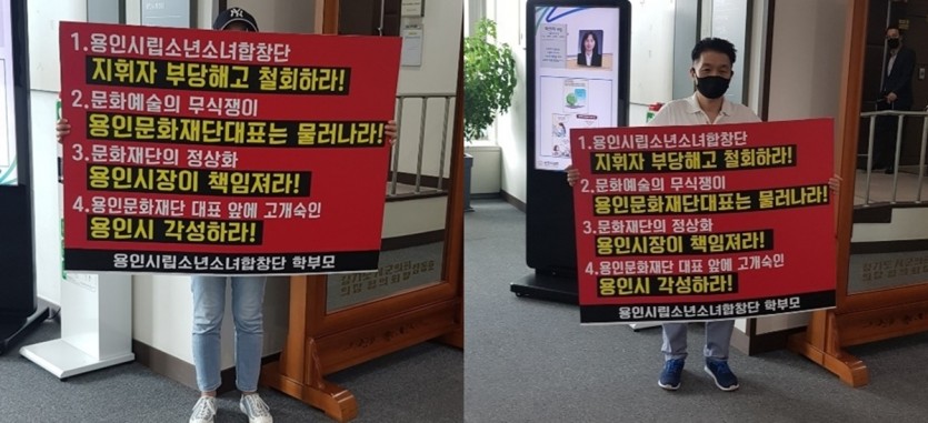 용인문화재단 책임있는 답변 있어야.? 논란이 된 정년규정 사라지고.! 시안부 임기 도입? 김경순 기자 2020-09-11 22:01 가 본문내용 확대/축소 본문 용인문화재단 책임있는 답변 있어야.?용인문화재단 책임있는 답변 있어야.? 용인시립소년소녀합창단 학부모회는 용인문화재단의 부당한 정년규정 처분에 맞서 1인 시위로 음악예술인들의 권익찬탈에 강력히 대응하겠다고 천명했다. 용인시립소년소녀합창단 학부모들이 11일 용인시의회 제247차 임시회의가 열리는 회의장 입구에서 용인문화재단의 정년규정으로 강제 퇴임한 강금구 지휘자의 복권을 주장하며 1인 시위를 이어가고 있다. 용인문화재단은 지난 5월 20일 용인시립소년소녀합창단 강 금구 지휘자에게 6월 30일부로 정년규정에 따른 사전 계약해지를 통보하고 퇴직금을 정산 지급해 사태를 발발시켰다. 특히 재단 측은 내규에 따라 정상적인 절차를 밟아 계약해지 했을 뿐, 부당해고는 아니라는 입장을 밝히고 있지만 지난 7월 논란이 된 정년규정을 삭제하고 지휘자의 계약기간을 2년 단임제로 바꾸어 논란의 불씨가 점점 거세지고 있다. 이에 합창단 학부모회는“정년이라는 기준은 없었다. 2년 계약직으로. 근무평가를 통해 계약 연장을 해왔다”며“용인문화재단이 1년전 당사자 협의도 없이 운영규정을 개정해 정년제를 도입했으며, 이를 적용시켜 강제퇴직처리하고 규정을 다시 바꾸는 개탄스러운 일이 벌어졌다”고 분통을 터트렸다. 또한, 지휘자 강氏의 복권으로 용인시민과 꿈을 키워가는 어린이들의 문화 감성을 무참히 짓밟아 버린 용인문화 재단의 실추된 명예가 회복되기를 기대한다고 전했다. 이에 용인문화재단 관계자는“당사자가 설명회에 참여했다는 서명을 했고, 반대의견을 냈으며 찬성에 동의만 안했을 뿐이다”고 반론했다. 한편, 용인문화재단은 논란의 불씨를 살려둔 채로 지난 8월 31일 용인문화재단 채용공고 게시판을 통해 용인시립소년소녀합창단 지휘자 모집공고를 발표했다. 좋아요 0 싫어요 0 김경순 기자 기자의 다른기사 보기 목록 댓글목록 이전글 선천성이상아 의료비 지원 대상 확대 20.09.11 다음글 경기도교육청, 제2회 초졸․중졸․고졸 검정고시 합격자 발표 20.09.11
