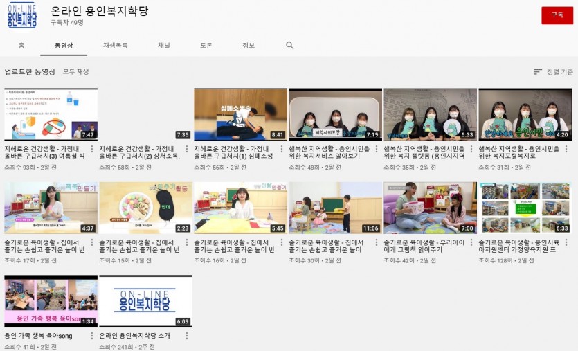 ‘온라인 용인복지학당’ 유튜브 채널 개설 - 용인시, 민・관・학 협업으로 사회복지 접근성 높여 - 김경순 기자 2020-09-17 19:16 가 본문내용 확대/축소 본문 ‘온라인 용인복지학당’ 유튜브 채널 개설 용인시는 16일 사회복지와 관련된 다양한 영상 콘텐츠를 제공하는 ‘온라인 용인복지학당’ 유튜브 채널 운영을 시작했다고 밝혔다. 이 채널은 코로나19 위기로 집합 교육이 어려워진 협의체 위원들의 교육을 돕고 시민들에게 다양한 복지 관련 정보를 제공할 수 있도록 개설된 것이다. 이를 위해 시는 지난 7월 시 지역사회보장협의체, 용인송담대와 협약을 맺은 바 있다. 용인복지학당 채널엔 의료정보・간호, 유아교육, 사회복지 등 3가지 주제로 ‘지혜로운 건강생활’, 슬기로운 육아생활‘, 행복한 지역생활’ 등 13개의 영상 콘텐츠가 업로드 됐다. 영상은 10분 이내로 짧고 쉽게 제작돼 시민 누구나 이해할 수 있도록 했으며 올해 말까지 꾸준히 새로운 콘텐츠 업데이트 할 방침이다. 영상 제작은 송담대 학생들이 맡았다. 백군기 용인시장은 “생활 속 응급처치 방법 등 실생활에 도움이 되는 다양한 콘텐츠를 준비했다”며 “많은 시민들이 즐겁게 이용하길 바란다”고 말했다. 좋아요 0 싫어요 0 김경순 기자 기자의 다른기사 보기 목록 댓글목록 이전글 ‘경기도용인교육지원청부설영재교육원온라인 반도체응용과학교실’ 20.09.17 다음글 [용인시수지장애인복지관, 서로의 온기를 느끼는 온(溫)택트 공모전 진행] 20.09.17
