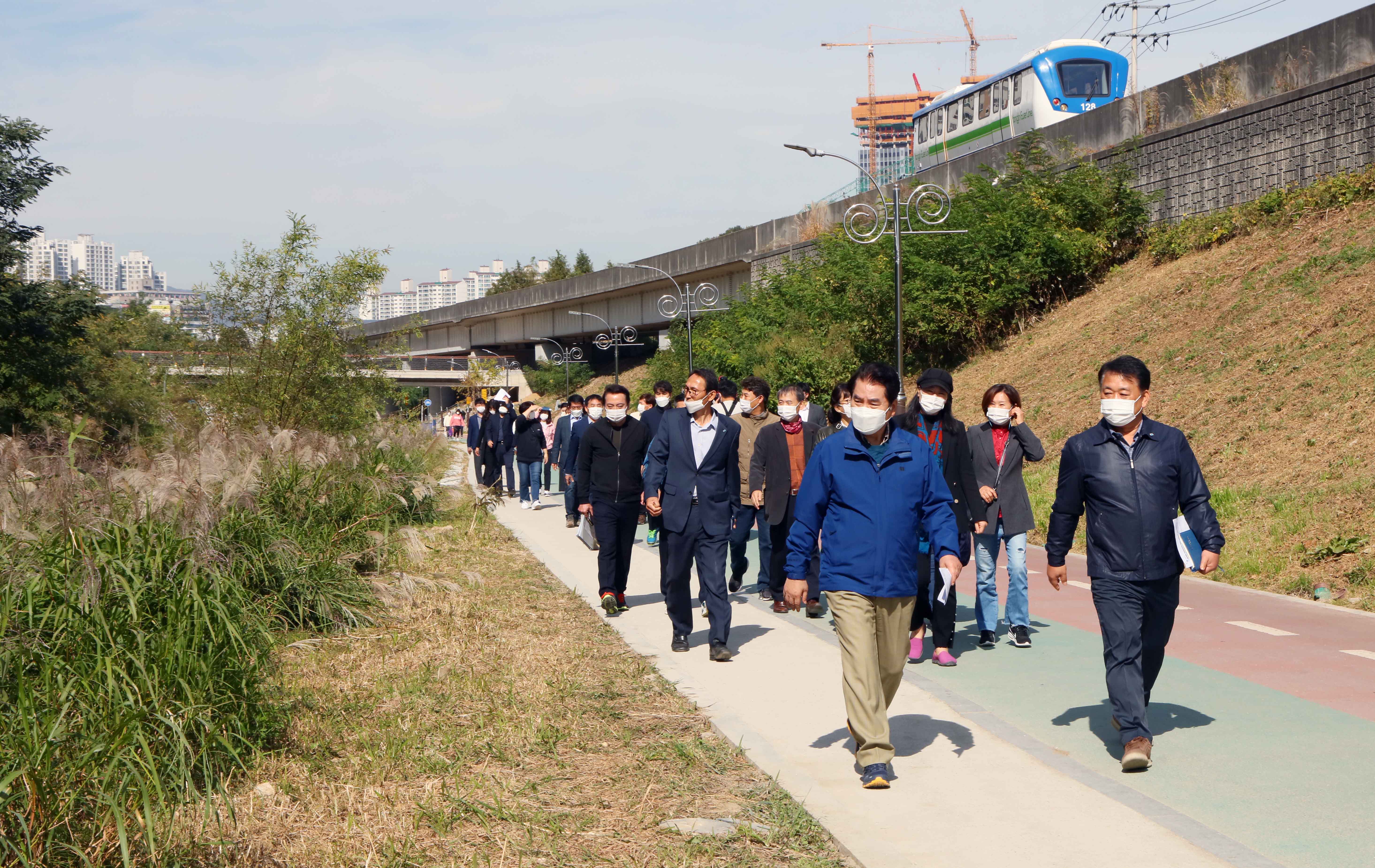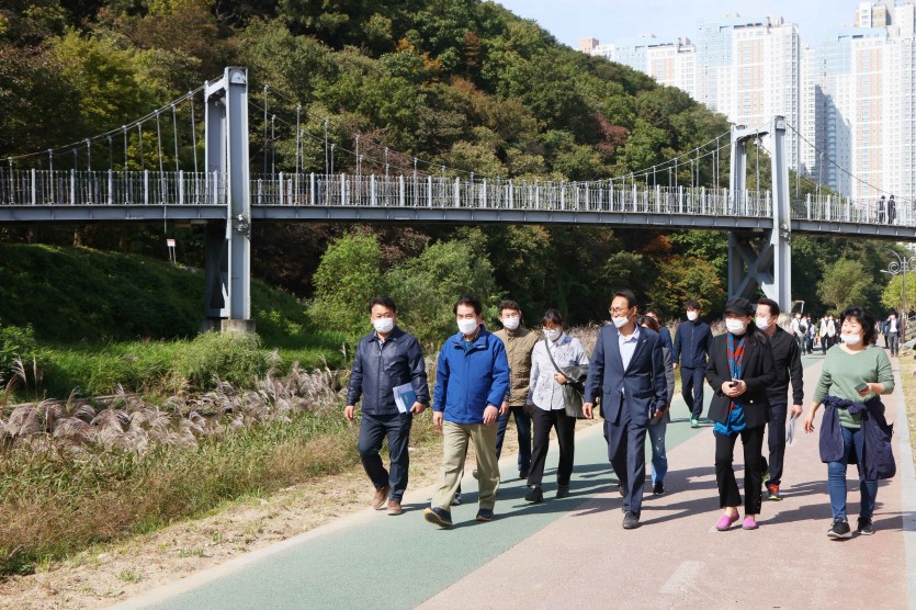 백군기 시장, 기흥구 시민감시단과 민원 현장 점검 신갈천~상하천 구간 시설물 관리 등 점검…지역 시의원・구 관계자 등 15명 - 김경순 기자 2020-10-21 22:15 가 본문내용 확대/축소 본문 백군기 시장, 기흥구 시민감시단과 민원 현장 점검백군기 시장, 기흥구 시민감시단과 민원 현장 점검 백군기 용인시장은 15일 기흥구 주민으로 구성된 시민감시단과 신갈천~상하천 4km구간을 함께 걸으며 산책로와 자전거도로 등의 시설물을 점검하고 주민 불편사항을 논의했다. 이 자리엔 백 시장을 비롯해 김기준 용인시의회 의장, 김운봉‧이은경 의원, 시민감시단, 이정표 구청장 등 구 관계자 등 25명이 참석했다. 시민감시단은 하천수 역류로 인한 악취, 하천 산책로와 자전거도로 분리, 자전거거치대와 연결계단 설치 등의 불편 사항을 건의했다. 백 시장은 “제기된 주민 불편에 대해선 조속히 조치할 수 있도록 해당 부서에서 신경을 써 달라”고 지시했다. 이정표 기흥구청장은 “주민들의 불편함이 없도록 근본적인 방책을 찾아 시행하겠다”고 말했다. 앞서 기흥구는 가을 행락철을 맞아 지난 14일부터 지역 시의원, 시민감시단과 함께 상습무단투기가 이어지고 있는 신갈동 빌라촌 등 주요 민원 발생지를 방문해 현장을 점검하고 대책 마련에 나섰다. 구는 오는 22일까지 법화산과 탄천변 일대까지 추가로 점검할 방침이다. 좋아요 0 싫어요 0 김경순 기자 기자의 다른기사 보기 목록 댓글목록 이전글 용인시새마을회 - 용인시 가수협회 20.10.21 다음글 신봉동, 통장협의회‘우리동네 바로알기’수지생태공원 답사 20.10.21