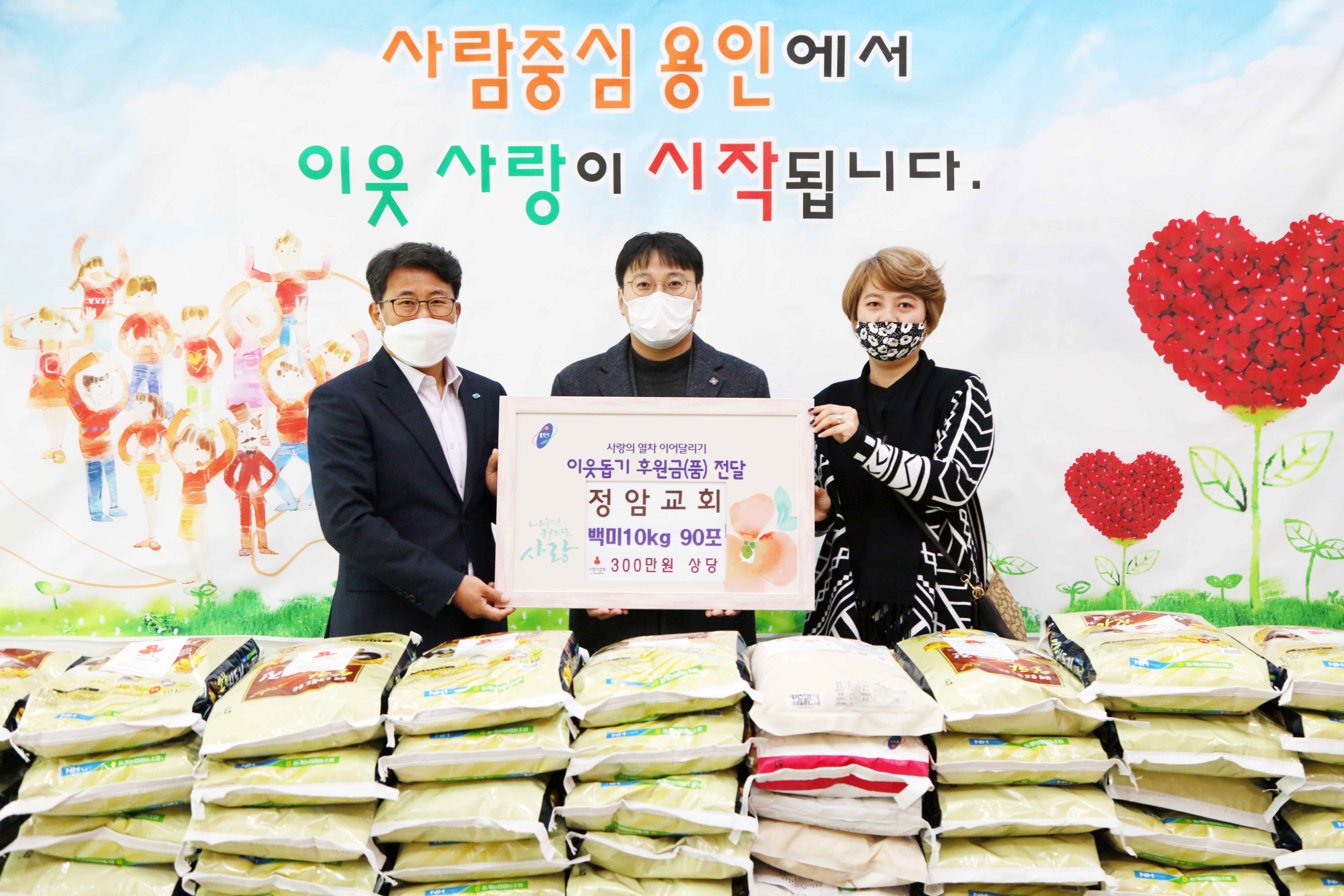 용인시, 정암교회서 어려운 이웃에 백미 100포 기탁 김경순 기자 2020-10-29 11:56 가 본문내용 확대/축소 본문 용인시, 정암교회서 어려운 이웃에 백미 100포 기탁 용인시는 29일 기흥구 동백동 정암교회서 어려운 이웃들에 전달해달라며 백미 10kg 100포(300만원 상당)를 기탁했다고 밝혔다. 이날 기탁한 쌀은 교회 신도들이 십시일반 모은 성금으로 마련한 것이다. 정암교회 관계자는 “날씨가 점점 추워지고 있는 시기에 어려운 이웃들에게 작지만 따뜻한 사랑의 온기를 전하고 싶어 정성을 모아 마련한 것”이라고 말했다. 시 관계자는 “주위의 소외된 이웃에게 관심을 갖고 나눔을 실천하는 정암교회에 깊은 감사를 드린다”며 “전달해 준 물품은 경기사회복지공동모금회를 통해 도움이 필요한 어려운 이웃들에게 잘 전달하겠다”고 말했다. 좋아요 0 싫어요 0 김경순 기자 기자의 다른기사 보기 목록 댓글목록 이전글 용인시 도시브랜드 강화를 위한 경관 교육 20.10.29 다음글 드림스타드 아동 대상 비대면 비만프로그램 운영 20.10.29