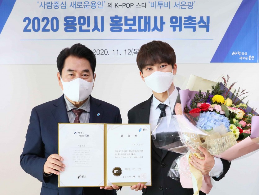 가수 서은광(비투비) ‘용인시 홍보대사’ 위촉 용인시, 도전 ‧ 열정 등 청년에 희망 메시지 전달…2년간 시 이미지 제고 역할 - 김경순 기자 2020-11-12 18:36 가 본문내용 확대/축소 본문 가수 서은광(비투비) ‘용인시 홍보대사’ 위촉가수 서은광(비투비) ‘용인시 홍보대사’ 위촉 용인시는 12일 지역 출신 가수 서은광(그룹 비투비 리더)씨를 시 홍보대사로 위촉하고 시장실에서 위촉장을 전달했다. 시는 가수의 꿈을 이룬 서 씨의 도전이 청년들에게 희망과 열정의 메시지를 전달하고, 꾸준히 발전하는 시의 이미지와도 부합한다는 판단에 따라 그를 홍보대사로 위촉했다. 서 씨는 앞으로 2년간 시의 주요 정책과 각종 축제・문화・지역경제 활성화에 관한 홍보를 비롯해 은이성지・농촌테마파크 등의 주요 관광지를 알리며 시 이미지 제고를 위한 다양한 활동을 하게 된다. 그는 1990년 용인에서 태어나 처인구 역북동 서룡초등학교, 처인구 남동 태성중‧고등학교를 졸업했다. 고교 재학 시절 시가 주최한 ‘용인시 청소년 춤·노래 경연대회’에 꾸준히 참가해 금상을 수상하는 등 가수의 꿈을 키워왔다. 이날 위촉식에서 서 씨는 “매년 대회에 참가했던 것이 뚜렷한 목표를 갖고 꿈을 이루는 데 훌륭한 발판이 됐다”며 “시 홍보대사로 위촉돼 매우 영광이며, 용인의 아들로서 고향을 알리는 데 최선을 다할 것”이라고 말했다. 백군기 용인시장은 “K-POP의 대표주자인 비투비 서은광씨를 용인의 홍보대사로 위촉하게 돼 기쁘다”며 “반도체클러스터와 플랫폼시티를 기반으로 K-반도체 벨트의 중심도시로 성장하고 있는 용인이 대한민국을 넘어 세계로 뻗어갈 수 있도록 활발히 홍보해주기 바란다”고 말했다. 한편, 지난 2012년 그룹 비투비(BTOB)로 데뷔한 서씨는 리더이자 메인 보컬로 ‘그리워하다’, ‘너 없인 안 된다’를 비롯한 다수의 히트곡이 있으며, 제25회 서울가요대상 발라드상, KBS 연기대상 OST상, 제8회 대한민국 대중문화예술상 국무총리 표창 등을 수상했다. 좋아요 0 싫어요 0 김경순 기자 기자의 다른기사 보기 목록 댓글목록 이전글 용인 서천중, 전 축구 국가대표 한동원 선수와 함께하는 축구교실 운영 20.11.12 다음글 원삼면, 원삼로타리클럽서 이웃돕기 쌀 기탁 20.11.12