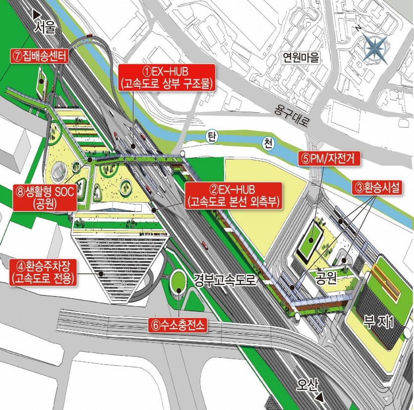 GTX용인역 국내 첫 고속도로 상공형 환승정류장 들어선다 용인시, 국토부 GTX 환승센터 시범사업 우수역사 선정…2025년 준공 목표 - 김경순 기자 2020-11-14 14:09 가 본문내용 확대/축소 본문 GTX용인역 국내 첫 고속도로 상공형 환승정류장 들어선다GTX용인역 국내 첫 고속도로 상공형 환승정류장 들어선다 GTX 용인역에 복합환승센터와 연계한 국내 첫 고속도로 상공형 환승정류장(EX-hub)이 들어선다. 이는 GTX 용인역 인근 경부고속도로 상부에 보행자 다리를 연결해 GTX에서 고속도로는 물론 버스와 지하철(구성역)로 편리하게 환승할 수 있도록 한 것이다. 시는 이 정류장을 이용하면 이 일대 경부고속도로의 교통체증 완화와 함께 고속철도 중심의 수도권 교통망을 구축하는 시너지 효과가 클 것으로 기대하고 있다. 시는 13일 이 같은 내용의 사업 제안이 높게 평가돼 국토부 주관 ‘수도권광역급행철도(GTX) 역사 환승센터 시범사업’ 우수 역사로 선정됐다고 밝혔다. 국토부는 GTX와 다른 교통수단과의 환승 시간을 3분 내로 최소화하는 환승센터를 건립하기 위해 지난 6월부터 지자체를 대상으로 시범사업을 공모했다. 공모엔 GTX 30역사 중 2개 노선이 교차하는 서울역, 삼성역, 청량리역 등을 제외한 27역사의 관할 지자체가 참가해 용인시를 비롯한 4곳이 우수역사로 선정됐다. 시는 최우수 역사로 선정된 2곳(양재역, 수원역)이 아직 기본계획 수립 단계인 GTX-C노선인 점을 감안하면 용인역의 경우 이미 착공에 들어간 GTX-A노선에 있어 제안의 현실가능성이 높다고 덧붙였다. 우수 환승센터로 지정되면 국토부로부터 1.5~2억원의 기본구상비와 교통‧건축‧도시계획 등 전문가로 구성된 총괄계획단을 지원받는 등 환승센터의 원활한 건립을 위한 행정지원을 받게 된다. 이와 관련 시는 내년말까지 역세권 특별계획구역 기본계획을 수립, 민간사업자 공모를 거쳐 2023년 6월 용인역 복합환승센터 사업계획이 승인되면 2025년말을 목표로 착공에 들어갈 방침이다. 백군기 용인시장은 “수도권 남부 교통 및 경제의 핵심 거점이 될 용인역 복합환승센터가 국토부 시범사업 우수 역사에 선정돼 무척 기쁘다”며 “고속도로와 철도 등이 인접한 지역 여건을 독창적 아이디어로 풀어낸 용인역 복합환승센터를 지역의 랜드마크로 만들어 갈 것”이라고 말했다. 또 “용인역 복합환승센터 및 EX-hub의 구상안을 발전시키고 현실화하기 위해서는 국가철도공단, 한국도로공사 등 유관기관과 긴밀한 협조를 거쳐야 하는 만큼 이번 국토부 시범사업 선정으로 이에 대한 긍정적인 협조를 기대한다”고 덧붙였다. 한편, 용인역 복합환승센터는 용인시가 공동사업시행자(경기도, 용인시, GH공사, 용인도시공사)와 함께 기흥구 보정동 구성역 일원 플랫폼시티 역세권 특별구역 내 부지면적 4만3870㎡에 연면적 33만9868.32㎡ 규모로 건립하는 복합시설이다. 사업구역 내엔 GTX 역사와 버스터미널 ‧ 환승주차장 ‧ 자전거 시설 등 환승시설과 판매 ‧ 업무 ‧ MICE ‧ 문화시설 등이 함께 들어서 시의 교통과 상업, 경제를 아우르는 경제도심이 될 것으로 기대하고 있다. 좋아요 0 싫어요 0 김경순 기자 기자의 다른기사 보기 목록 댓글목록 이전글 57만1253㎡ 규모 경안천 녹색벨트 조성 20.11.14 다음글 육아종합지원센터 우수보육프로그램 12점 선정 20.11.14