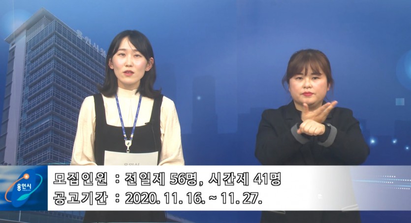 용인시, 장애인 일자리 채용공고 수어로 영상 만들어 김경순 기자 2020-11-17 23:24 가 본문내용 확대/축소 본문 용인시, 장애인 일자리 채용공고 수어로 영상 만들어 용인시는 장애인들이 일자리 정보를 쉽게 확인할 수 있도록 2021년도 장애인일자리사업 채용공고에 수어, 자막, 음성을 포함한 동영상 채용공고를 제작해 16일부터 27일까지 공고문과 함께 게시한다. 시는 기존 모집 공고가 일부 장애인들이 내용을 확인하기 어렵다는 국민제안을 바탕으로 수어와 음성, 자막을 넣어 만들었다. 용인시 수어통역센터 문혜정 통역사가 재능을 기부해 영상에 수어를 담아낼 수 있었다. 문 씨는 “코로나19와 취업난 이중고를 겪는 장애인에게 도움이 되면 좋겠다”고 말했다. 시 관계자는 “이번 사업으로 장애인들이 취업 정보를 쉽게 얻을 수 있기를 바란다”면서 “국민들의 입장에서 맞춤형 행정 서비스를 제공하겠다”고 밝혔다. 한편, 장애인일자리사업은 미취업 장애인들이 읍면동 행정복지센터 등에서 행정업무를 보조해, 실무에 필요한 능력 향상을 돕는 프로그램이다. 좋아요 0 싫어요 0 김경순 기자 기자의 다른기사 보기 목록 댓글목록 이전글 용인자연휴양림 내 패러글라이딩 착륙장 조성 20.11.17 다음글 어려운 이웃을 위한 김치 나누기 온정 이어져 20.11.17