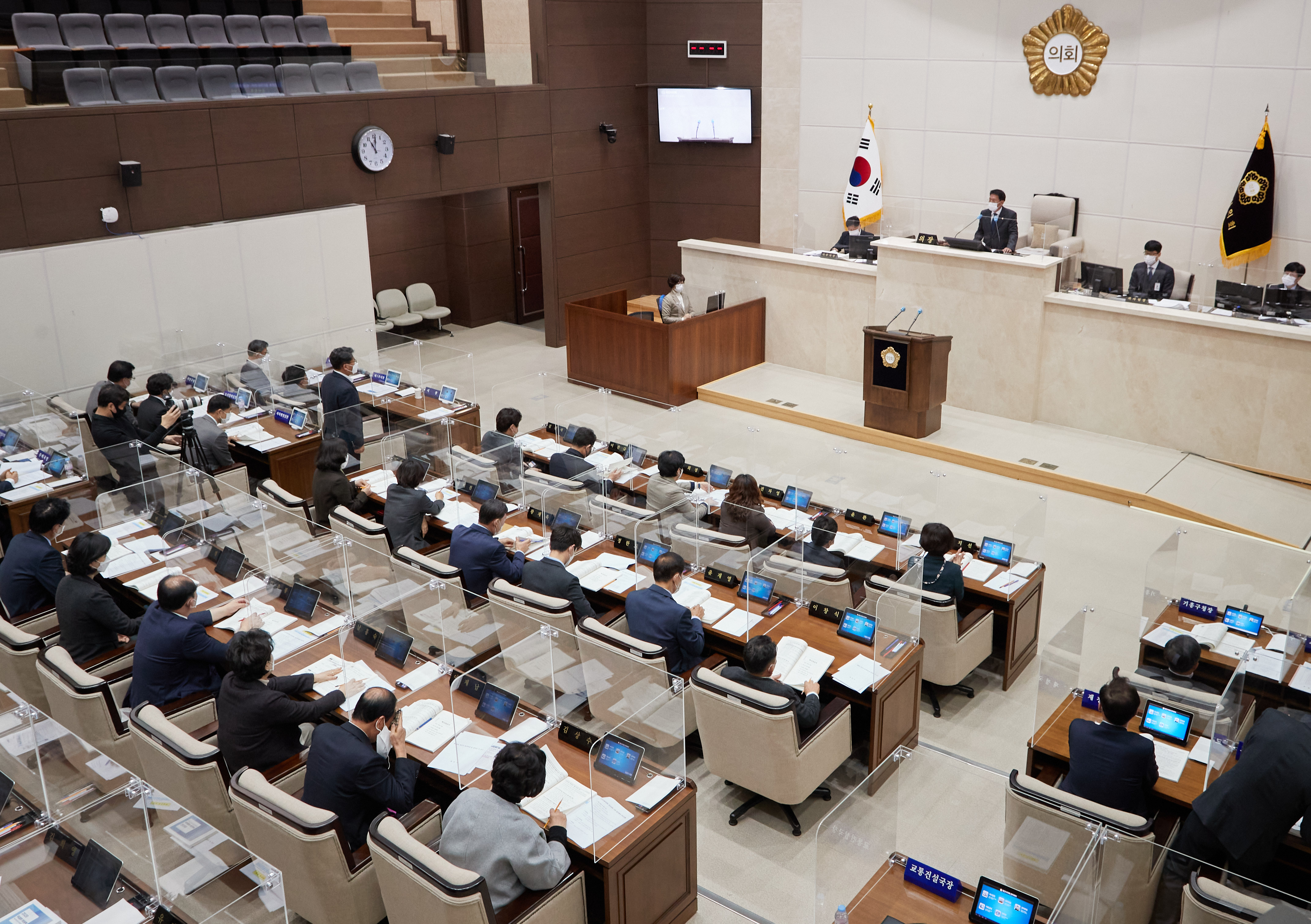 용인시의회, 제249회 제2차 정례회 개회 김경순 기자 2020-11-23 19:35 가 본문내용 확대/축소 본문 용인시의회, 제249회 제2차 정례회 개회용인시의회, 제249회 제2차 정례회 개회 용인시의회(의장 김기준)는 23일 본회의장에서 제249회 제2차 정례회 개회식과 제1차 본회의를 열었다. 김기준 의장은 개회사를 통해 “각종 재난에도 코로나19 대응과 시민 생활 안정을 위해 노력하는 공직자들의 노고에 감사드리고, 어려운 시기에 불편을 감내하며 생활 방역에 동참하고 용인시 발전을 위해 관심과 격려를 보내주신 시민 여러분께도 감사드린다”고 말했다. 또한, “오늘부터 25일간 열리는 제2차 정례회는 행정사무감사, 시정질문, 예산안 등 중요한 안건 심사도 예정되어 있다. 금년도에 추진한 사업을 마무리하고 다가오는 새해를 설계하는 중요한 회기이다”고 말했다. 이어, “특히, 행정사무감사를 통해 1년간 추진한 사업이 적정하고 효율적으로 추진됐는지 세심하게 살펴달라”고 말했다. 이번 정례회는 23일부터 12월 17일까지 25일간의 일정으로 개회되며, 조례안 15건, 규칙안 1건, 동의안 17건, 공유재산 관리계획안 8건, 의견제시 2건, 예산안 2건, 보고 4건 총 49건의 안건을 처리할 예정이다. 23일부터 24일까지 각 상임위원회 별로 조례안 및 동의안 등 심의, 25일 제2차 본회의, 26일부터 다음달 4일까지 2020년도 행정사무감사, 7일 제3차 본회의, 8일 제4차 본회의, 9일부터 11일까지 각 상임위원회 별로 예산안 등 심의, 14일부터 16일까지 예산결산특별위원회에서 예산안 등 심의, 17일 제5차 본회의를 끝으로 폐회할 계획이다. 좋아요 0 싫어요 0 김경순 기자 기자의 다른기사 보기 목록 댓글목록 이전글 용인시, 청년 농업인 20명이 무료 급식 시설에 김치 기탁 20.11.23 다음글 어정초, 다양한 스포츠클럽 활동 운영 20.11.23