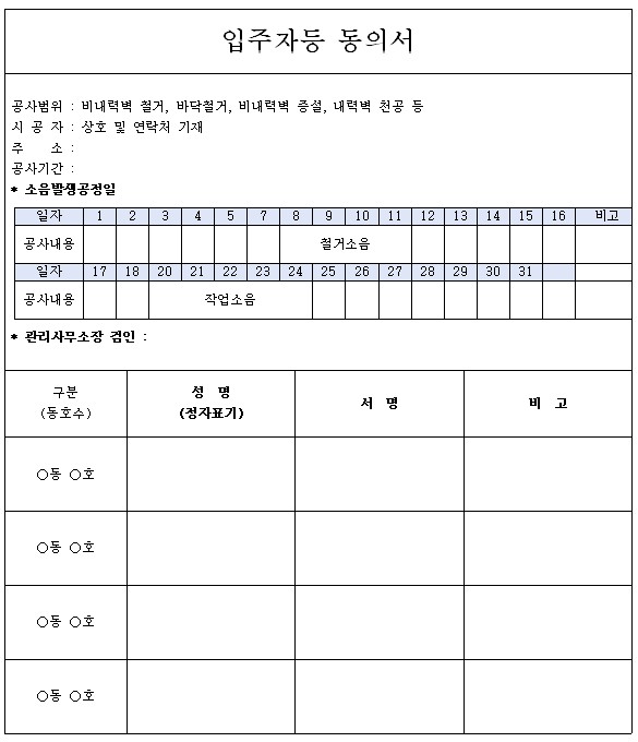 수지구, 아파트 내 공사 소음 내용과 시기 명시 동의서 양식 도입 김경순 기자 2020-11-27 23:44 가 본문내용 확대/축소 본문 수지구, 아파트 내 공사 소음 내용과 시기 명시 동의서 양식 도입수지구, 아파트 내 공사 소음 내용과 시기 명시 동의서 양식 도입 용인시 수지구는 27일 소음을 유발하는 아파트 인테리어 공사 내용을 명확하게 표기한 새로운 동의서 양식을 도입한다고 밝혔다. 현행 공동주택관리법은 소음을 유발하는 내부 공사 시 공사내용과 방법을 포함한 동의서를 제출하도록 되어 있으나 별도의 양식이 없었다. 각 공사마다 다른 양식으로 인해 주민들이 공사 내용을 인지하기 어려웠고, 소음으로 인한 공사중단 요청 등 분쟁이 빈번하게 발생했기 때문이다. 이에 공동주택 내 인테리어 공사 허가신청 시 제출하는 입주자 동의서에 공사내용과 소음 발생 시기를 명확히 기재하는 새로운 동의서 방식으로 일원화했다. 구는 관리주체와 입주민들에게 공사에 대한 정확한 정보가 공유되어, 이웃간 다툼을 줄일 것으로 내다봤다. 구 관계자는 “주민들이 느낄 수 있는 불편함을 개선하는 건축행정을 위한 정책을 발굴해 나가겠다”고 말했다. 좋아요 0 싫어요 0 김경순 기자 기자의 다른기사 보기 목록 댓글목록 이전글 처인구 이동읍 행정복지센터 폐쇄・직원 등 45명 자가격리 조치 20.11.27 다음글 원삼면, 대한한돈협회 용인지부서 돼지고기 100kg 기탁 20.11.27