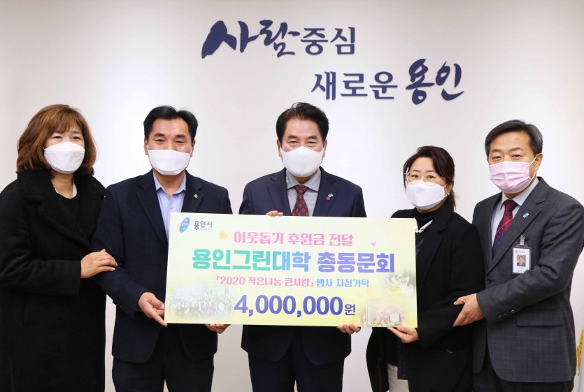 용인시, 용인그린대학 총동문회서 이웃돕기 성금 기탁 김경순 기자 2020-12-02 19:32 가 본문내용 확대/축소 본문 용인시, 용인그린대학 총동문회서 이웃돕기 성금 기탁 용인시는 1일 용인그린대학 총동문회가 시장실을 방문해 어려운 이웃에게 써달라며 성금 400만원을 기탁했다고 밝혔다. 이날 기탁된 성금은 총동문회가 진행한 ‘2020년 작은나눔 큰사랑’행사에서 직접 생산한 농산물을 판매해 얻은 수익금이다. 원유철 동문회장은 “봉사활동에 참여해 준 회원들께 감사하고, 생활이 어려운 이웃들의 겨울나기에 보탬이 되었으면 좋겠다”라고 했다. 백군기 용인시장은 “동문회에서 지역사회에 대한 나눔을 실천해주어 감사드리며, 기탁금은 소외 계층에게 잘 전달하겠다”면서“어려운 이웃들을 충분히 보듬어줄 수 있는 따뜻한 지역 공동체를 함께 만들어 나가자”라고 말했다. 한편, 용인그린대학은 농업 인재를 육성하고 귀농 희망자의 정착을 돕는 교육프로그램으로 지난 11월 졸업한 14기까지 총 1,175명이 수료했다. 좋아요 0 싫어요 0 김경순 기자 기자의 다른기사 보기 목록 댓글목록 이전글 이웃사랑 실천하는 ‘사랑의 열차’ 1일 힘찬 출발 20.12.02 다음글 ‘창의인재 미래캠퍼스’ 코딩교육 우수 참여자 12명 시상 20.12.02