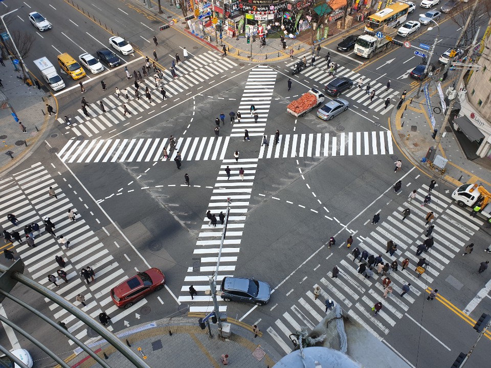 수지구, 로얄스포츠센터 사거리 대각선횡단보도 설치 김경순 기자 2020-12-08 21:26 가 본문내용 확대/축소 본문 수지구, 로얄스포츠센터 사거리 대각선횡단보도 설치 수지구는 8일 풍덕천동 로얄스포츠센터 사거리에 대각선횡단보도를 설치했다고 밝혔다. 이곳은 수지구의 대표적인 상업지역으로 신분당선 수지구청역 1·4번 출구가 있어 교통량과 보행량이 많은 곳이다. 기존 직선형 횡단보도는 대각선 방향으로 바로 건널 수 없어 두 번이나 횡단보도를 건너야 하는 등 시민들의 불편함이 컸고, 보행신호 시에도 우회전하는 차량이 있어 보행자의 안전을 위협한다는 지적도 있었다. 구는 대각선횡단보도를 설치해 보행자의 편의를 높이고, 우회전 차량과 보행자 간 사고도 예방할 수 있을 것으로 내다봤다. 구 관계자는 “보행자를 배려하는 대각선횡단보도를 도입한 만큼 잠깐의 기다림보다 사람의 안전을 우선 생각하는 선진 교통문화가 정착될 수 있도록 주민들의 협조를 부탁드린다”라고 말했다. 좋아요 0 싫어요 0 김경순 기자 기자의 다른기사 보기 목록 댓글목록 이전글 용인시, 동백호수공원 야외무대 비가림막 설치 20.12.08 다음글 용인시, 어린이·기업 등 이웃돕기 성금과 물품 기탁 잇따라 20.12.08