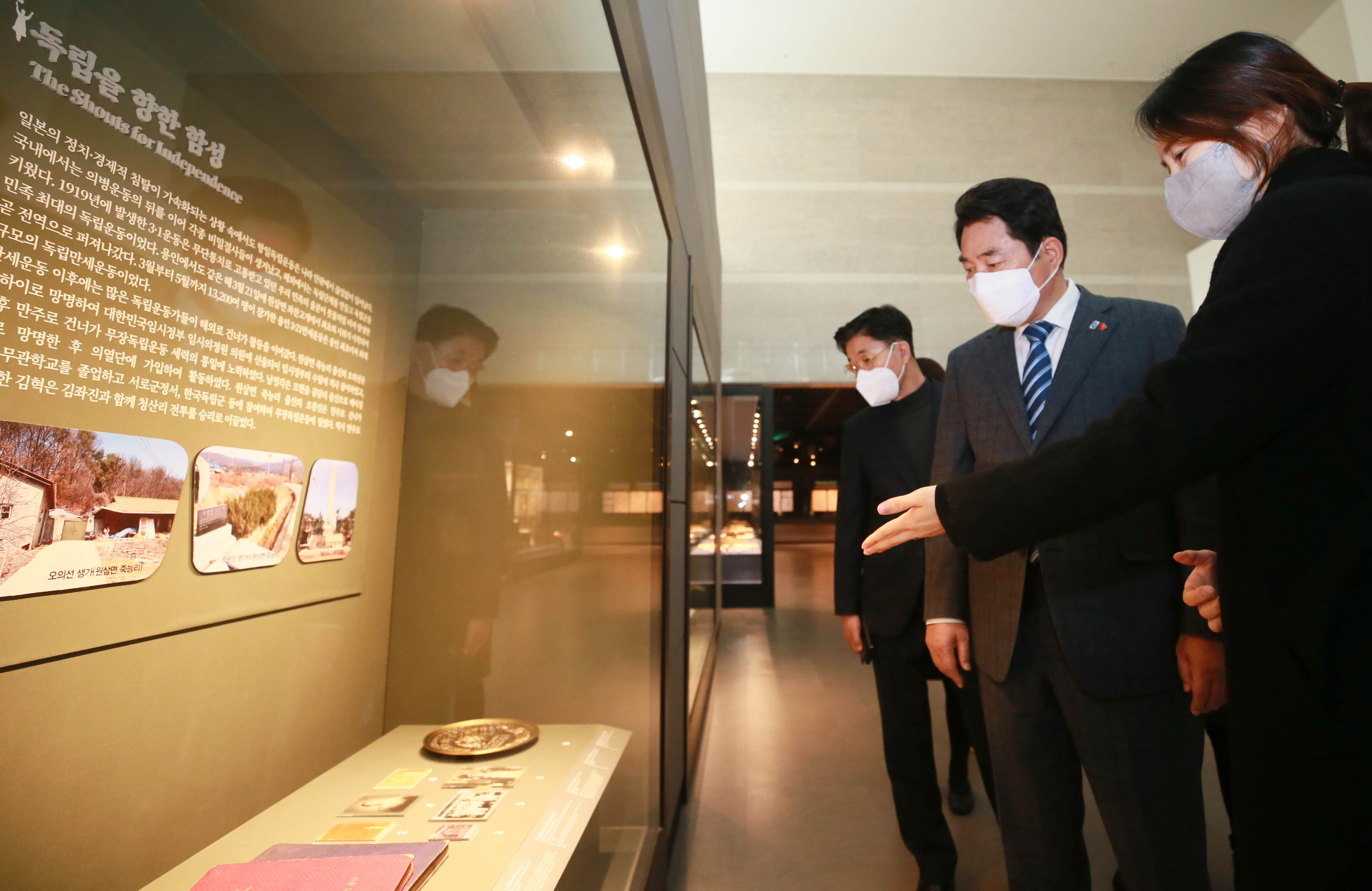 백군기 용인시장, 새 단장한 시 박물관 상설전시실 점검 김경순 기자 2021-01-13 22:23 가 본문내용 확대/축소 본문 백군기 용인시장, 새 단장한 시 박물관 상설전시실 점검백군기 용인시장, 새 단장한 시 박물관 상설전시실 점검 백군기 용인시장은 13일 기흥구 중동 용인시박물관을 방문해 새 단장한 상설전시실의 시설 상태를 점검하고 전시 내용을 관람했다. 이날 백 시장은 박물관 내부를 꼼꼼히 살펴보며 시민 누구나 알기 쉽게 이용하도록 구성됐는지, 편의공간이 충분히 조성됐는지 등을 확인했다. 이어 학예연구사의 설명으로 용인의 역사를 시대별로 개편한 1‧2전시실과 시 승격 이후 주요 이슈를 소개한 ‘용인 뉴스 라이브러리 10’ 코너를 둘러봤다. 백 시장은 “용인시박물관을 지역에 대한 애향심과 정체성을 확인할 수 있는 역사체험공간으로 만들어갈 것”이라며 “시민 여러분이 많이 찾아와 관람하기 바란다”고 말했다. 한편, 지난 2009년 개관한 시 박물관은 연면적 2970㎡ 지하1층 지상3층 규모로 선사시대부터 근현대사까지 400여점의 유물을 전시하고 있다. 좋아요 0 싫어요 0 김경순 기자 기자의 다른기사 보기 목록 댓글목록 이전글 용인시, 취약계층 의료환경 개선 나서 21.01.13 다음글 용인시의회 동정 21.01.13