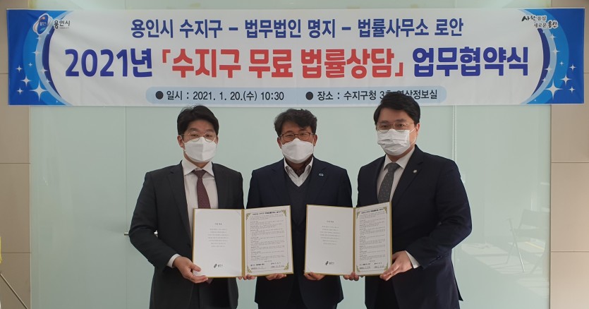 수지구, 비대면 무료법률상담 지원 업무협약 - 법무법인 2곳과 제휴…구민 누구나 본인인증 후 무료로 상담 가능 김경순 기자 2021-01-20 22:18 가 본문내용 확대/축소 본문 수지구, 비대면 무료법률상담 지원 업무협약수지구, 비대면 무료법률상담 지원 업무협약 용인시 수지구는 20일 법무법인 명지, 법률사무소 로안 등 관내 법무법인 2곳과 비대면 무료 법률상담 지원을 위한 업무협약을 체결했다고 밝혔다. 코로나19로 인해 대면 상담이 어려운 구민들을 위해 비대면으로 법률상담을 제공하기 위한 것이다. 구는 이번 업무협약에 맞춰 구청 홈페이지에 사이버 법률상담 코너를 개설해 운영한다. 비대면 법률상담은 수지구민 누구나 무료로 이용할 수 있으며, 휴대전화를 통한 본인인증 후 상담 글을 게시하면 3영업일 내에 분야별 전문 변호사가 회신한다. 단, 재판 중인 사건은 상담 신청할 수 없다. 구 관계자는 “비대면 무료 법률상담으로 구민들이 일상생활에서 발생할 수 있는 금전 문제, 사고 등 법률과 관련한 어려움을 해소하길 바란다”며“구민들을 위한 다양한 지원방안을 발굴해 나가겠다”고 말했다. 좋아요 0 싫어요 0 김경순 기자 기자의 다른기사 보기 목록 댓글목록 이전글 이재명 도지사 - 경기도시장군수협의회(회장 오산시장 곽상욱) 임원진 간담회 개최 21.01.20 다음글 시 공유재산 임차한 소상공인에 임대료 80% 감면 21.01.20