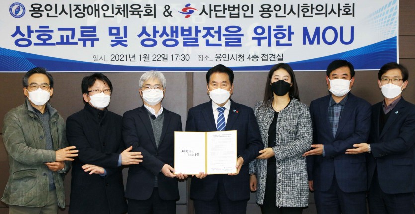 용인시는 22일 용인시장애인체육회와 (사)용인시한의사회가 체육회원들의 건강증진과 생활체육 활성화를 위한 업무 협약을 맺었다고 밝혔다.