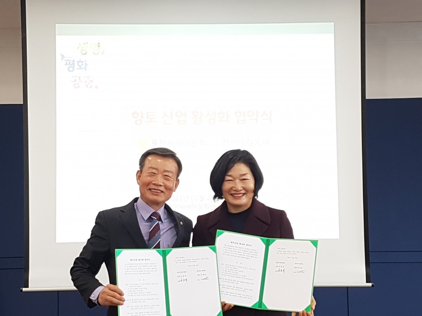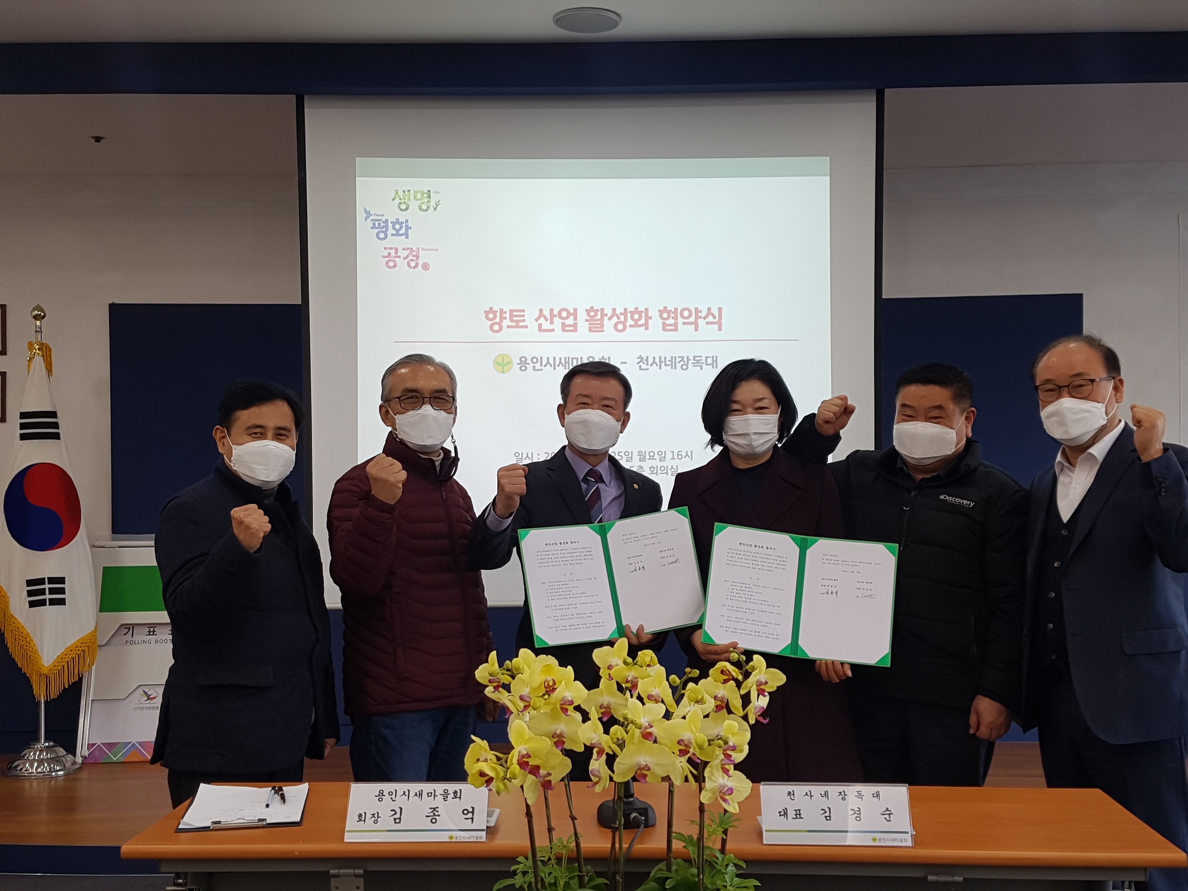 1월 25일 용인시새마을회(회장 김종억)는 천사네장독대(대표 김경순)와 지역사회 발전을 위한 생명살림운동 활성화 방안으로 친환경 농산물로 가공되는 식품업체인 천사네 장독대와 새마을 회관에서 업무협약식을 가졌다.