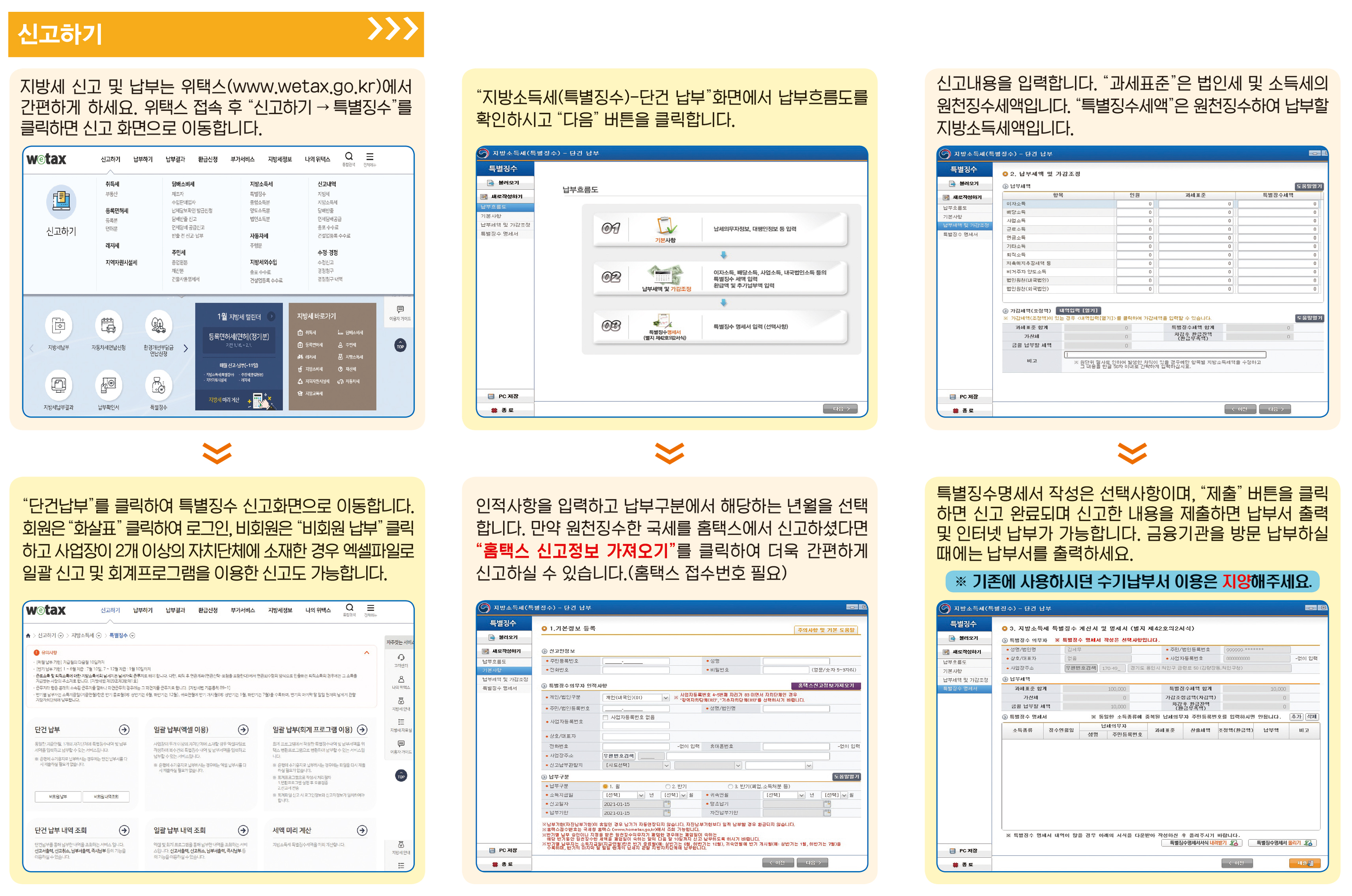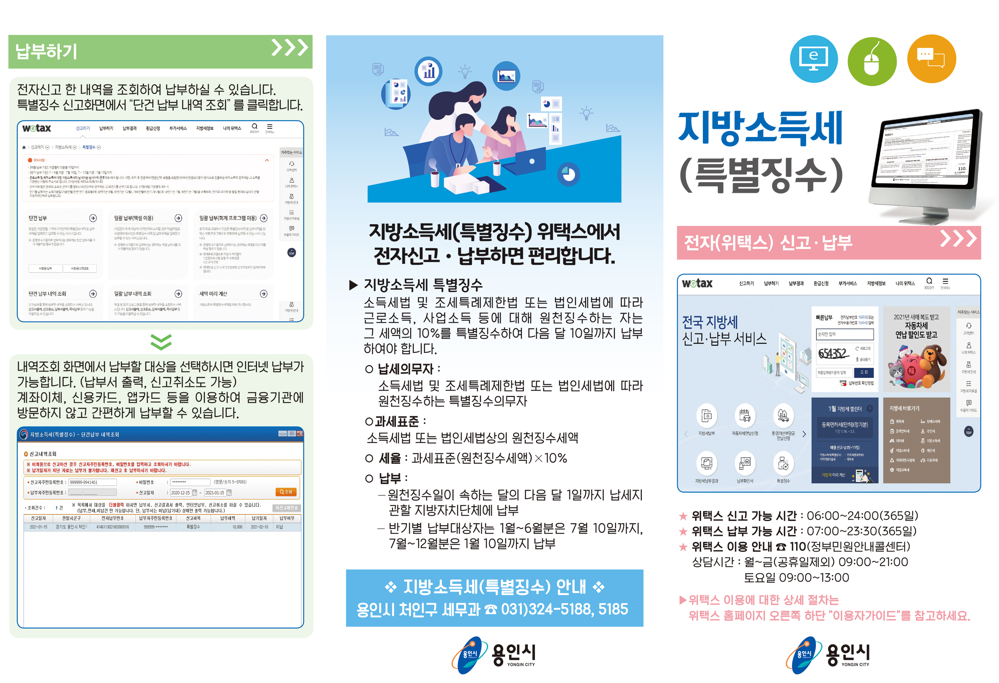 처인구, 지방소득세 전자신고・납부 방법 안내 김경순 기자 2021-02-02 18:10 가 본문내용 확대/축소 본문 처인구, 지방소득세 전자신고・납부 방법 안내처인구, 지방소득세 전자신고・납부 방법 안내 용인시 처인구는 2일 지방소득세 특별징수분을 납부하는 개인이나 법인을 대상으로 위택스를 활용한 전자신고・납부 방법 안내했다고 밝혔다. 특별징수 의무자가 전자신고 방법을 알지 못해 직접 금융기관을 방문해 수기납부서를 작성하는 불편을 줄이려는 것이다. 이를 위해 구는 지난해 수기 납부한 개인사업자나 법인 1700여곳에 전자신고 납부・방법 안내문을 발송하고 구 홈페이지에도 관련 내용을 게시했다. 지방소득세 특별징수분은 근로・퇴직 소득 등을 사업주가 원천징수한 후 그 세액의 10%를 사업장 소재지 관할 자치단체에 신고・납부토록 한다. 구 관계자는 “위택스를 활용하면 신고에서 납부까지 원스톱으로 편리하게 처리할 수 있는 만큼 많은 납세자들이 이를 활용해 주길 바란다”고 당부했다. 좋아요 0 싫어요 0 김경순 기자 기자의 다른기사 보기 목록 댓글목록 이전글 감사관 개방형 직위 공개 모집 21.02.02 다음글 용인시, 어린이 통학용 LPG차 구매 보조금 40% 늘린다 21.02.02
