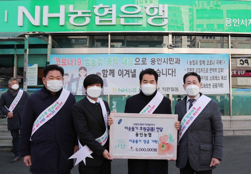 용인농협서 어려운 이웃 위해 성금 500만원 기탁 용인시, 23일 김상용 조합장이 꽃 소비 촉진 행사서 백군기 시장에 전달 - 김경순 기자 2021-02-24 00:21 가 본문내용 확대/축소 본문 용인농협서 어려운 이웃 위해 성금 500만원 기탁 용인시는 23일 김상용 용인농협 조합장이 백군기 용인시장에게 어려운 이웃을 위해 써달라며 500만원의 성금을 기탁했다고 밝혔다. 성금 전달식은 이날 처인구 김량장동 농협 용인시지부 앞 주차장에서 마련된 꽃 소비 촉진 캠페인 행사에서 진행됐다. 김 조합장은 “코로나19로 어려워진 이웃들에게 조금이나마 위안이 되기 바라는 마음으로 성금을 기탁했다”고 말했다. 백 시장은 “용인농협이 이웃을 위해 나눔을 실천해줘 감사하며 도움이 필요한 취약계층 이웃에게 큰 힘이 될 것”이라고 말했다. 한편, 이날 농협 용인시지부는 코로나19 장기화로 지친 시민들과 화훼농가를 돕기 위한 꽃 소비 촉진 캠페인을 열어 1004송이의 장미와 600만원 상당의 다육식물 등을 시민들에 무료로 배부했다. 좋아요 0 싫어요 0 김경순 기자 기자의 다른기사 보기 목록 댓글목록 이전글 포곡읍, 저소득 취약계층 15가구에 밑반찬 지원 21.02.24 다음글 백군기 용인시장, 이웃돕기 나눔 실천 기업들과 간담회 21.02.24