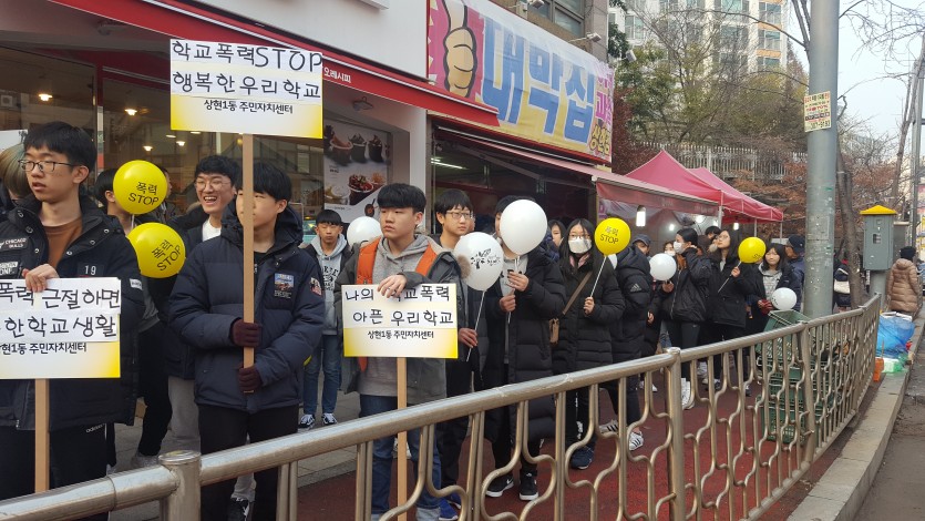 상현1동, 청소년 학교폭력 예방 교육, 캠페인 실시 소비환경뉴스 2018-01-18 07:42 가 본문내용 확대/축소 본문 상현1동, 청소년 학교폭력 예방 교육, 캠페인 실시상현1동, 청소년 학교폭력 예방 교육, 캠페인 실시 용인시 수지구 상현1동은 17일 주민자치위원회에서 겨울방학을 맞아 관내 중․고등학생 70명을 대상으로 학교폭력 예방 교육을 하고 거리 캠페인을 실시했다고 밝혔다. 이날 경기남부청소년폭력예방재단 전문강사는 각종 청소년 폭력 범죄의 실제 사례를 소개해 경각심을 일깨우고 실제 학교 폭력을 당했을 때 대처 방법 등을 설명했다. 교육 후 주민자치위원들과 학생들은 상현1동 주민센터 인근 상업지역에서‘학교폭력예방’등의 문구가 적힌 풍선과 피켓을 들고 지나가는 청소년을 대상으로 캠페인을 벌였다. 주민자치위원회 관계자는 “지난해 부산 여중생 폭력사태가 알려지며 학교폭력이 갈수록 흉폭․집단화 되는 것에 대한 우려가 컸다”며 “관내 학생들이 학교폭력에 경각심을 가지고 대처 방법 등을 알 수 있도록 교육을 실시했다”고 말했다. 좋아요 0 싫어요 0 소비환경뉴스 기자의 다른기사 보기 목록 댓글목록 이전글 신갈동, 시민 편의 위해‘민원안내도우미’운영 18.01.23 다음글 주민자치연합회 11대 회장에 이창식씨 선임 18.01.18