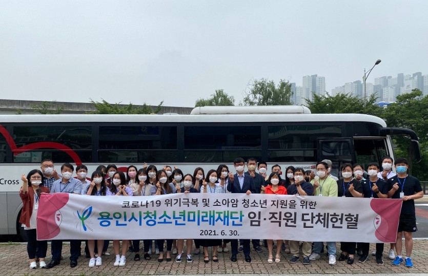 소아암 청소년 지원 및 혈액수급 위기극복 동참을 위한 용인시청소년미래재단 ‘단체헌혈’ 김경순 기자 2021-06-30 20:58 가 본문내용 확대/축소 본문 소아암 청소년 지원 및 혈액수급 위기극복 동참을 위한소아암 청소년 지원 및 혈액수급 위기극복 동참을 위한 재단법인 용인시청소년미래재단(대표이사 이동무)은 소아암 청소년 지원 및 코로나19 사태 장기화에 따른 혈액수급 위기 극복을 위해 6월 30일 ‘단체헌혈’ 캠페인을 진행하였다. 이날 행사에는 이동무 대표이사를 포함하여 청소년수련관, 청소년수련원, 청소년상담복지센터 등에서 근무하는 직원 33명이 참가하였고 마스크 착용, 체온측정, 헌혈자 간 거리두기 등 코로나19 확산 우려를 철저히 차단하고 안전하게 단체헌혈을 진행하였다. 이동무 대표이사는 “코로나19 장기화로 심각한 혈액수급 위기 극복을 위해 자발적으로 헌혈 캠페인에 참가해 준 직원여러분께 진심으로 감사드린다.”며 “오늘 헌혈 후 직원들이 자발적으로 기부한 헌혈증서는 소아암 청소년들에게 전달할 계획이다.”라고 말했다. 작년에 이어 올해도 헌혈 캠페인에 참가한다는 청소년수련관의 주경희 청소년지도사는 “소아암 청소년을 위한 헌혈 캠페인 소식을 듣고 올해도 망설임 없이 지원을 했다.”면서 “코로나19가 얼른 끝나 다시 청소년들과 함께 웃으며 만날 수 있는 시간만 손꼽아 기다린다.”고 말했다. 한편, 2010년 용인시가 출자·출연하여 설립한 용인시청소년미래재단은 청소년 활동, 위기청소년 상담, 학교 밖 청소년 지원, 진로체험지원센터 운영 등 용인시 청소년의 미래에 대한 효율적인 지원을 목적으로 다양한 청소년 사업을 운영하고 있다. 좋아요 0 싫어요 0 김경순 기자 기자의 다른기사 보기 목록 댓글목록 이전글 용인시, 콜센터 직원 전원 정규직 전환 21.07.01 다음글 ‘2021 대한민국소비자브랜드대상’수상 21.06.30