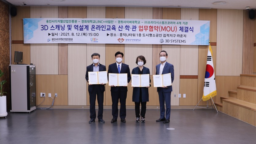 용인시디지털산업진흥원·경희대·경희사이버대·㈜쓰리디시스템즈코리아 4개 기관 ‘3D 스캐닝 및 역설계 온라인교육’ 산·학·관 업무… 용인관내 소공인, 시민, 학생 등 인적자원의 직무역량 개발 및 전문성 강화를 위해 상호 협력 - 김경순 기자 2021-08-12 23:34 가 본문내용 확대/축소 본문 용인시디지털산업진흥원·경희대·경희사이버대·㈜쓰리디시스템즈코리아 4개 기관 ‘3D 스캐닝 및 역설계 온라인교육’ 산·학·관 업무협약 체결 용인시디지털산업진흥원(원장 김윤석, 이하 진흥원)과 경희대학교 LINC+사업단(단장 백운식), 경희사이버대학교(총장 변창구), ㈜쓰리디시스템즈코리아(부사장 정원웅) 4개 기관은 용인 관내 소공인 임직원 및 용인시민과 학생들의 전문성 강화를 위한 ‘3D 스캐닝 및 역설계 온라인 교육’ 프로그램 제작 및 확산, 발전을 위해 8월 12일 기흥구에 위치한 도시형소공인 집적지구 라운지에서 업무협약을 체결했다고 밝혔다. 이번 협약으로 4개 기관은 유대관계를 강화하고 지역사회 발전을 선도할 용인 관내 소공인, 시민, 학생 등 인적자원의 직무역량 개발과 전문성 강화를 위해 상호 협력하기로 했다. 협약 주요 내용은 △3D 스캐너를 활용한 3D 스캐닝 및 역설계 교육과정 제작△교육 프로그램 대내외 홍보△전문성 강화를 위한 산·학·관 협력△그 외 상호 협력이 필요하다고 인정하는 사항 등 이다. 진흥원 관계자는 “3D 스캐너는 4차산업혁명이 대두되면서 제조업에서 다양한 기술들을 융합할 수 있는 솔루션으로 조명받고 있다. 3D 스캐너로 추출한 3D 데이터 기반으로 역설계, 제품 설계, 3D 스캐닝을 활용한 3D 프린팅 기술을 자동차, 항공우주, 의료, 제조, 건설, 교육 등 다양한 분야에서 활용이 가능하다. 이번 3D 스캐닝 및 역설계 온라인교육을 통해 소공인과 용인시민, 학생에게 3D 스캐너를 널리 알리고 제품 기술개발 고도화로 성장할 수 있는 계기가 되도록 노력하겠다 ”라고 밝혔다. 좋아요 0 싫어요 0 김경순 기자 기자의 다른기사 보기 목록 댓글목록 이전글 경기도교육청, 2학기 학사운영방안에 따른 학교 감사 일정 연기 21.08.12 다음글 상하동 이웃위해 ㈜상공양행서 마스크 1만6000매 기탁 21.08.12