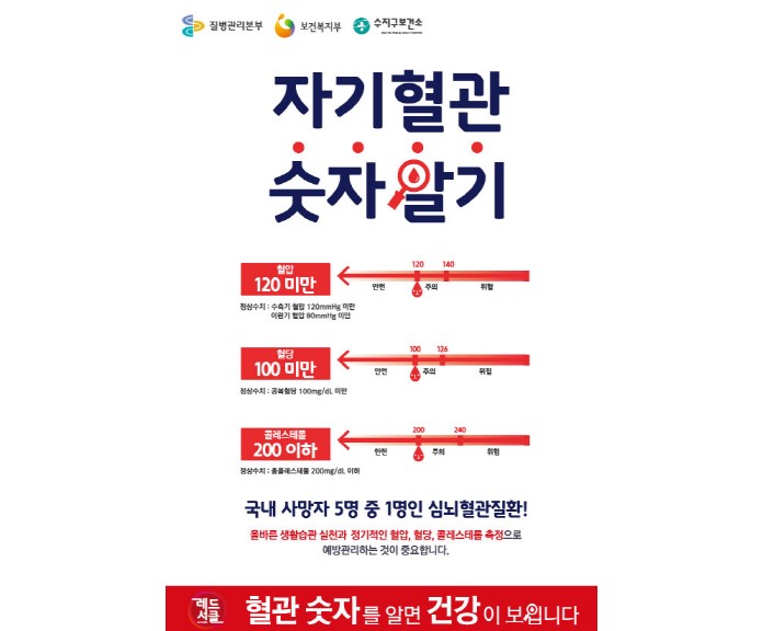 ‘자기혈관 숫자 알기, 레드서클’ 캠페인 실시 용인시 3개구 보건소, 심뇌혈관질환 예방관리주간 맞아 진행 - 김경순 기자 2021-09-01 21:25 가 본문내용 확대/축소 본문 ‘자기혈관 숫자 알기, 레드서클’ 캠페인 실시 용인시 3개구 보건소가 심뇌혈관질환 예방관리주간(9월 1~7일)을 맞아 9월 한 달 동안 ‘자기혈관 숫자 알기, 레드서클’ 캠페인을 진행한다. ‘레드서클’은 건강한 혈관을 상징하며, ‘자기혈관 숫자 알기, 레드서클’이라는 주제로 진행되는 이번 캠페인은 혈압, 혈당, 콜레스테롤 수치를 측정해 자신의 혈관 건강을 확인하고 미리 관리해 심뇌혈관질환을 예방하는 의미를 담고 있다. 먼저 처인구보건소는 만성질환자들의 자가관리 능력 향상을 위해 비대면으로 ‘고당 e-공부방’을 운영하고 만보계, 건강지압기, 미끄럼방지 양말 등 이 담긴 건강꾸러미를 배부해 시민들 스스로 혈관 건강에 힘쓸 수 있도록 할 예정이다. 기흥구보건소에서는 심뇌혈관질환 예방과 관리를 위해 대사증후군에 대해 설명하는 동영상과 고혈압·당뇨 관리를 위한 실시간 강의 등을 진행할 계획이다. 수지구보건소에서는 대중교통수단인 마을버스 8대에 광고물을 게시해 혈관 숫자의 중요성에 대해 알리고, 모바일 걷기 앱을 활용해 혈압과 혈당 측정하는 사진을 업로드하면 기념품을 제공하는 이벤트도 준비했다. 또 카카오톡 플러스 친구를 이용해 1:1 비대면 상담도 진행할 예정이다. 보건소 관계자는 “코로나19로 건강관리에 소홀하기 쉬운 시기에 이번 캠페인을 통해 주요 사망원인 중 하나인 심뇌혈관질환에 대한 경각심을 높이길 바란다”며 “시민들이 일상 속에서 스스로 건강을 관리할 수 있는 프로그램들을 지속적으로 운영해 나가겠다”고 말했다. 한편 심뇌혈관질환 예방관리주간은 심뇌혈관질환 예방·관리 방법을 알리고 적극적으로 실천할 수 있는 계기를 마련하기 위해 질병관리청이 지난 2013년부터 지정해 운영하고 있다. 좋아요 0 싫어요 0 김경순 기자 기자의 다른기사 보기 목록 댓글목록 이전글 용인시 코로나19 방역 인력 위해 사랑의 물품 전달 21.09.01 다음글 용인도시공사, ‘신(新) 산업과 도시부동산’강연회 개최 21.08.31