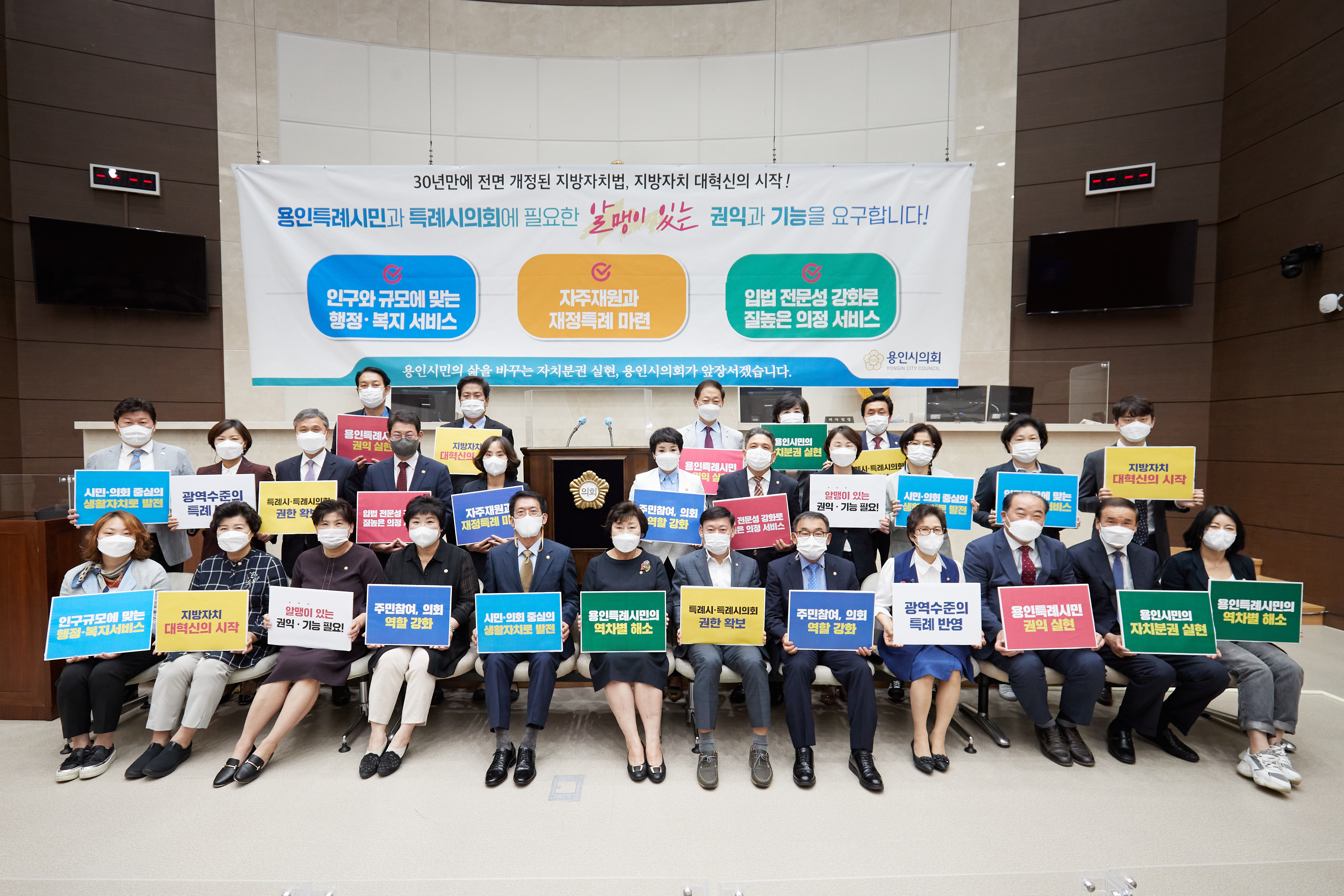 용인시의회, 특례시 및 특례시의회의 목소리를 반영한 「지방자치법」 관계법령 개정 촉구 건의안 채택 김경순 기자 2021-09-06 21:41 가 본문내용 확대/축소 본문 용인시의회, 특례시 및 특례시의회의 목소리를 반영한 용인시의회(의장 김기준)는 6일 제257회 임시회 제2차 본회의에서 윤원균(풍덕천2‧상현1‧상현2동/더불어민주당) 의원이 대표발의한 「특례시 및 특례시의회의 목소리를 반영한 「지방자치법」 관계법령 개정 촉구 건의안」을 의원 전원의 동의로 채택했다. 윤원균 의원은 제안 설명에서 지난해 12월 지방자치법 전부개정안이 국회 본회의를 통과했고, 지방의회 인사권 독립 인사권 독립 등을 골자로 한 지방자치법 시행령이 입법예고 중에 있으나, 특례시만의 차별화된 권한이나 구체적으로 주어지는 특례는 명시되어 있지 않아 허울뿐인 특례시와 특례시의회가 출범되지 않을까 위기감이 수원‧고양‧용인‧창원 4개 특례시 지역사회 내에서 점점 고조되고 있다고 강조했다. 용인시의회는 특례시민의 상대적 역차별을 해소하고 특례시 위상에 걸맞은 행정·재정·의정 서비스를 제공할 수 있는 권리를 가질 수 있도록 ▲ 중앙정부는 「지방자치법」 관계법령 제‧개정 일정 등을 즉각 공유하고 광역단체를 경유한 의견수렴이 아닌 특례시 및 특례시의회와 직접 소통하라 ▲ 광역수준의 의정수요에 대응하고 복잡다양한 집행기구의 사무와 예산을 효과적으로 견제할 수 있도록 특례시의회 정책지원 전문인력의 직급을 광역의회와 동일하게 적용하라 ▲ 일부 광역도시와 인구, 재정상황 등이 유사함을 적극 반영하여 특례시의회의 의원들에 대한 처우에 있어 불합리한 차별을 해소하라는 내용을 담은 「지방자치법」 관계법령 개정 촉구 건의안을 채택하고 국회, 청와대, 행정안전부, 경기도 등에 송부할 계획이다. 다음은 건의문 전문이다. 특례시 및 특례시의회의 목소리를 반영한 「지방자치법」 관계법령 개정 촉구 건의문 지난해 12월 지방자치법 전부개정법률안이 국회 본회의를 통과함으로써 인구 100만명 이상 대도시인 경기도 수원·고양·용인과 경상남도 창원 등 4개 도시는 내년부터 ‘특례시’로서 새롭게 거듭나게 되었으며, 지방의회는 ‘인사권 독립’과 ‘정책지원 전문인력 채용’ 등을 통해 집행기관을 효율적으로 견제‧감시할 수 있는 기틀을 마련하게 되었다. 그러나 지방자치법 전부개정안 시행까지 4개월여밖에 남지 않은 시점에서 지방의회 인사권 독립 등에 대한 세부사항을 골자로 한 지방자치법 시행령이 입법예고 중에 있으나, 특례시만의 차별화된 권한이나 구체적으로 주어지는 특례 규정이 명시되어 있지 않고 중소도시와 같은 기준을 그대로 적용하고 있으며, 지방공무원법 등 관련법령의 개정에 있어 중앙정부의 의견수렴이나 초안 공개가 미흡하고 지지부진한 상태로 있어, 내년 1월 지방자치법 시행 준비에 있어 불확실한 상태가 지속되어, 특례시라는 명칭만 부여받은 채 특례는 거의 없는 허울뿐인 특례시와 특례시의회가 출범되지 않을까 하는 위기감이 수원‧고양‧용인‧창원 4개 특례시 지역사회 내에서 점점 고조되고 있다. 때문에 그동안 획일적인 지방자치제도 테두리 내에서 행정적·재정적 권한과 의무 사이의 크나큰 괴리로 수많은 불이익과 불편, 역차별 등을 겪어왔던 450만 특례시민들의 부푼 기대감을 꺾고 더 깊은 실망감을 주게 되지 않을까 우려스러운 바이다. 이미 특례시는 재정규모, 행정수요, 생활물가 등에서 일부 광역도시와 유사하거나 오히려 더 높은 수준이고 광역사무를 충분히 해결할 수 있는 행정역량을 갖추고 있어, 4개 특례시 및 특례시의회가 끊임없이 내고 있는 ‘광역수준의 특례 반영’ 목소리는 매우 합리적이고 현실적인 요구라고 할 수 있다. 지방소멸이라는 백척간두의 시대적 위기상황 앞에 특례시가 지역거점도시로서 지역 균형 발전에 기여하고 자치재정‧자치행정‧자치입법 등에 있어서도 성공적이고 선도적인 자치분권 모델로 자리매김 할 수 있도록 중앙정부가 적극 관심을 가지고 관계법령 내 특례 반영에 나서야 한다. 이에, 용인시의회는 내년 1월 13일 특례시가 규모와 권한의 일치로 특례시민의 상대적 역차별을 해소하고 특례시 위상에 걸맞은 행정‧재정‧의정서비스를 제공할 수 있는 권리를 가질 수 있도록 다음과 같이 「지방자치법」 관계법령 등을 개정할 것을 촉구한다. 하나, 중앙정부는 「지방자치법」 관계법령 제‧개정 일정 등을 즉각 공유하고 광역단체를 경유한 의견수렴이 아닌 특례시 및 특례시의회와 직접 소통하라. 하나, 광역수준의 의정수요에 대응하고 복잡다양한 집행기구의 사무와 예산을 효과적으로 견제할 수 있도록 특례시의회 정책지원 전문인력의 직급을 광역의회와 동일하게 적용하라. 하나, 일부 광역도시와 인구, 재정상황 등이 유사함을 적극 반영하여 특례시의회의 의원들에 대한 처우에 있어 불합리한 차별을 해소하라. 2021. 9. 6. 용인시의회 의원 일동 좋아요 0 싫어요 0 김경순 기자 기자의 다른기사 보기 목록 댓글목록 이전글 용인미르스타디움 걷기 좋은 둘레길 구