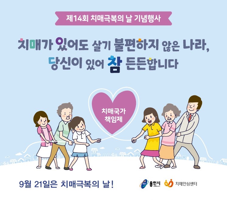 용인시 보건소,‘제14회 치매극복의 날 기념 행사’ 개최 - 13일부터 치매 조기 검진과 예방 중요성 알리기 나서 - 김경순 기자 2021-09-13 21:35 가 본문내용 확대/축소 본문 용인시 보건소,‘제14회 치매극복의 날 기념 행사’ 개최용인시 보건소,‘제14회 치매극복의 날 기념 행사’ 개최 용인시 3개구 보건소 치매안심센터가 제14회 치매극복의 날(9월 21일)을 맞아 치매 조기 검진과 치매 예방의 중요성을 알리기 위한 다양한 기념행사를 마련했다. 매년 9월 21일은 치매 극복의 날로 치매 관리의 중요성을 널리 알리고 치매를 극복하기 위한 범국민적 공감 형성을 위해 정부가 지정한 법정기념일이다. 먼저 처인구 치매안심센터는 13일부터 17일까지 관내 경로당에 치매예방 꾸러미를 전달하고 치매 극복을 위한 교육을 진행하며, 15일에는 용인경전철 시청·용인대역 앞에서 ▲포토존 사진 인증 이벤트 ▲비대면 작품전시존(zone) 운영 ▲치매인식개선 캠페인 등을 실시한다. 기흥구 치매안심센터도 같은 기간 기흥구 치매안심센터 블로그를 통해 치매안심 함께극복 캠페인을 진행한다. 캠페인에는 ▲치매파트너 참여 ▲치매예방수칙 3·3·3 인증 ▲온라인 작품 전시 감상 등 총 3가지 방법으로 참여할 수 있다. 아울러 14일부터 16일까지는 치매안심센터 내에 작품전시회‘기억을 그리다’와 포토존도 운영한다. 수지구 치매안심센터는 16일부터 30일까지 매주 목요일 오전 치매안심센터와 수지구청 일대에서 치매인식개선 캠페인을 진행한다. 치매안심센터 로비와 카페에는 시민들이 참여할 수 있는 ▲포토존 ▲인지기능 체험 부스 ▲치매극복 (샌드아트) 영상존 ▲ 치매극복 룰렛 게임 ▲ 치매극복 소망나무도 준비돼 있다. 시 관계자는 “치매극복의 날 행사가 치매 예방 정보를 널리 알리고, 치매에 대한 관심을 이끌어 내는 계기가 되길 기대한다”며 “시민들의 많은 관심과 참여를 바란다”고 말했다. 좋아요 0 싫어요 0 김경순 기자 기자의 다른기사 보기 목록 댓글목록 이전글 “지역사회 문제 해결에 용인시자봉센터가 앞장서 달라” 21.09.13 다음글 “2022년 주민의견사업 온라인 시민 투표에 참여하세요!” 21.09.13