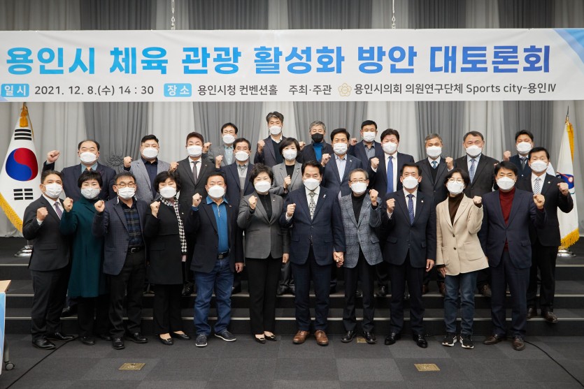 용인시의회 의원연구단체 「Sports-City 용인Ⅳ(대표 남홍숙)」는 지난 8일 오후 2시 30분 시청 컨벤션홀에서 김기준 의장, 백군기 시장, 조효상 용인시체육회 회장, 오상준 용인시관광협의회 회장 등 체육 및 관광 관계자 약 50여 명이 참석한 가운데 ‘용인시 체육 관광 활성화 방안’을 주제로 대토론회를 개최했다.