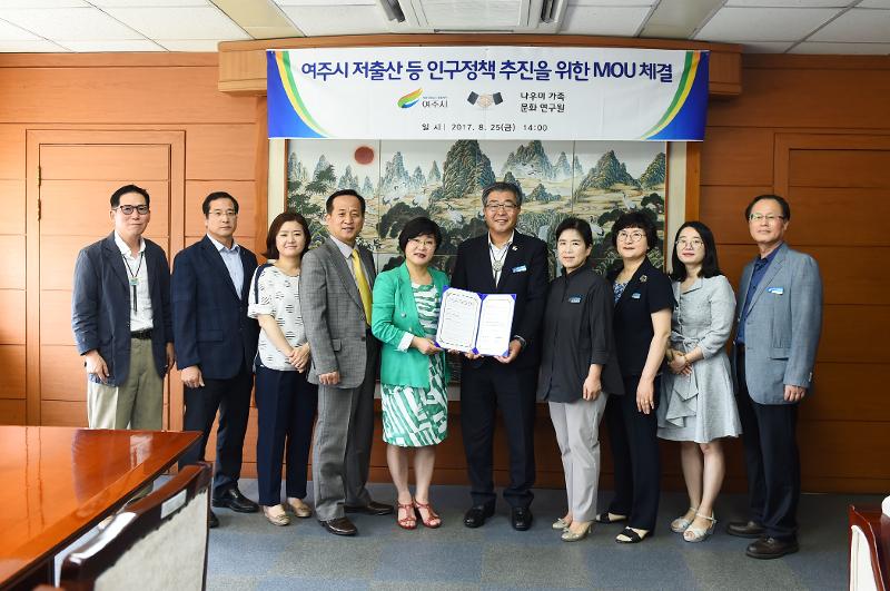 여주시 저출산 인구정책 추진을 위한 협약식 소비환경뉴스 2017-08-26 09:39 가 본문내용 확대/축소 본문 여주시 저출산 인구정책 추진을 위한 협약식여주시 저출산 인구정책 추진을 위한 협약식 저출산 극복을 위한 새로운 도약! 여주시(시장 원경희)는 저출산·고령사회의 인구정책 추진을 위하여 공공·민간의 힘을 모으기로 했다. 시는 25일 오후 여주시청 시장실에서 나우미 가족문화연구원 원장 및 가족상담전문 교수 2명과 여주시 저출산·인구증가 업무 관련 부서장 등 총 8명이 참석한 가운데 저출산 극복을 위한 공동 실천협약(MOU)을 체결했다. 이번 협약은 지역의 저출산 문제해결 및 바람직한 연애관, 결혼관의 정립으로 출산을 장려하고 자녀 기르기 좋은 환경조성과 행복한 가정생활로 궁극적으로는 여주시 저출산 문제 해결을 위한 실천 가능한 정책들을 상호 협력해 공동으로 실천해 나가고자 추진하였다. 그동안 여주시에서는 저출산 극복을 위한 직장문화개선을 위해 공직내부에서 솔선수범하여 여성과 남성 모두 눈치 보지 않고 출산휴가와 육아휴직 등을 사용할 수 있게 하는 등 다양한 인구증가 정책을 추진하여 왔다. 이날 원경희 여주시장은 “이번 협약을 통해 여주시 여성정책 저변확대는 물론 시민이 행복하고 살기좋은 도시구현으로 저출산 극복의 전기를 마련하는 계기가 되기를 기원한다”고 전했다. 여주시민 중 행복한 가정생활을 위해 상담이 필요할 경우에는 나우미가족문화연구원에서 상담도움을 받을수 있으며, 상담을 원할 경우에는 사회복지과 가족여성팀(☎ 887-2266)으로 문의하면 된다. 좋아요 0 싫어요 0 소비환경뉴스 기자의 다른기사 보기 목록 댓글목록 이전글 농산물 가공식품 생산,판매 17.08.26 다음글 모현면 천사들이 날개를 펴다 17.08.25