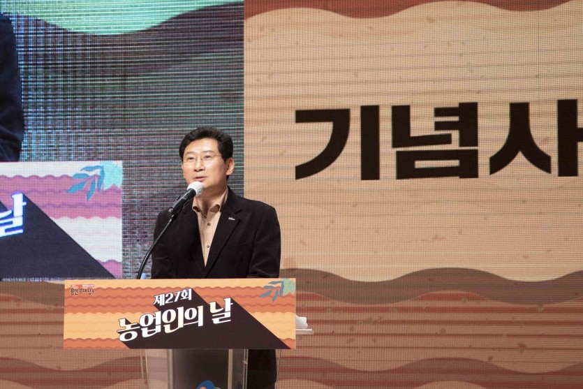 이 시장은 김종삼 시인의 시 ‘어부’의 한 구절인 '살아온 기적이 살아갈 기적이 된다'를 인용하며 농업인들의 노고를 격려해 농업인들로부터 큰 박수를 받았다.