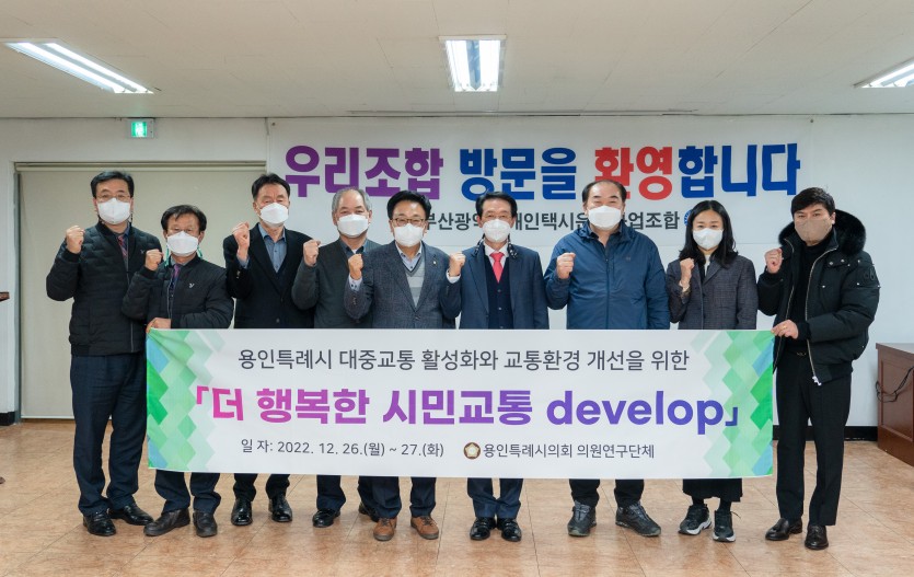 용인특례시의회 의원연구단체 「더 행복한 시민교통 develop」, 부산광역시 벤치마킹 실시 김경순 기자 2022-12-28 16:26 가 본문내용 확대/축소 본문 용인특례시의회 의원연구단체 「더 행복한 시민교통 develop」, 부산광역시 벤치마킹 실시 용인특례시의회 의원연구단체 「더 행복한 시민교통 develop」(대표 김영식)는 지난 26일부터 27일까지 1박 2일 동안 부산광역시 교통환경 시스템 벤치마킹을 실시했다. 이번 벤치마킹은 현장방문을 통해 교통관리 시스템 성공사례를 수집하는 등 용인시 대중교통 활성화와 교통환경 개선을 위해 추진하게 됐다. 주요 일정으로는 부산광역시 택시운송조합을 방문해 부산의 택시 현황에 대해 청취하고, 택시 회원 조합원으로 된 단체의 ‘친절한 택시, 편리한 택시, 안전한 택시’라는 슬로건 아래 추진하고 있는 사업 등에 대한 시민들의 만족도와 사업 추진 실적 등 질의 시간을 가졌다. 또한, 부산광역시 교통정보서비스센터를 방문해 시민들에게 실시간 교통정보를 제공하며 교통시설 효율을 극대화하기 위한 노력과 국토관리청, 경찰청, 한국도로공사 등 총 9개 유관기관의 교통정보 연계 시스템을 통한 교통정보 통합DB 구축 시스템 사례를 전해 듣고, 실시간 교통정보를 제공하는 상황실을 둘러봤다. 김영식 대표는 “부산광역시의 사례를 통해 대중교통 발전 방향에 대해 논의할 수 있는 자리를 갖게 되어 뜻깊다. 부산광역시의 안전한 교통환경을 용인특례시에 적용할 수 있는 방안을 마련해 나가기 위해 노력하겠다”고 밝혔다. 한편, 용인특례시의회 의원연구단체 「더 행복한 시민교통 develop」는 김영식(대표), 안치용(간사), 김운봉, 김희영, 신민석, 기주옥, 김태우, 안지현 의원(8명)으로 구성됐으며, 용인특례시 시민 편의를 도모할 교통환경 개선방안을 연구하고 있다. 좋아요 0 싫어요 0 김경순 기자 기자의 다른기사 보기 목록 댓글목록 이전글 용인특례시, 시의회에 공공시설 개방 및 사용에 관한 일부개정조례안 재의 요구 22.12.28 다음글 이상일 용인특례시장, 제38회 경기교육대상 수상 22.12.28