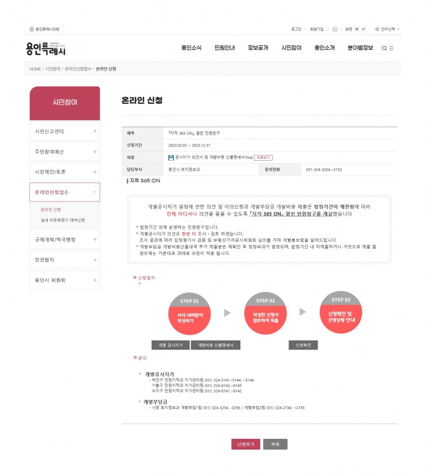 - 용인특례시, 시 홈페이지에 열린 민원 서비스‘지적365ON’운영