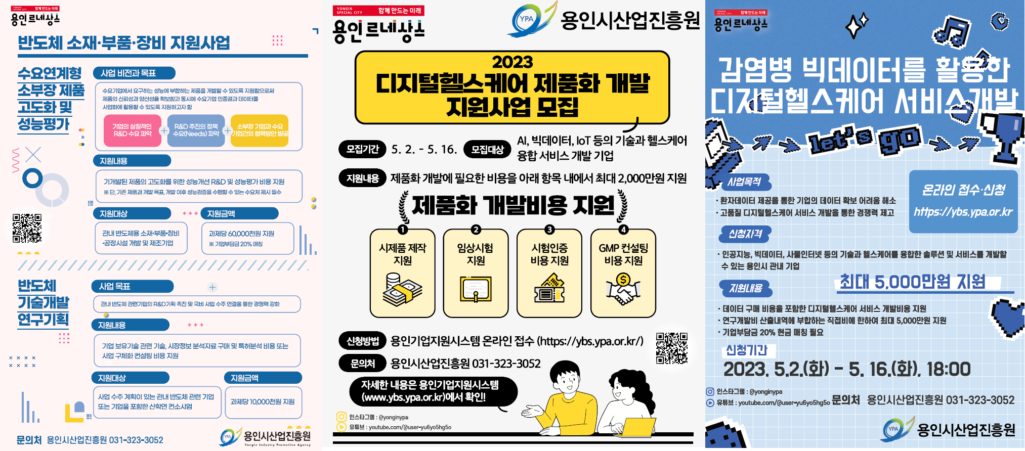 용인시산업진흥원, 반도체 및 헬스케어 분야 육성을 위한 관내기업 지원사업 실시 김경순 기자 2023-05-03 06:27 가 본문내용 확대/축소 본문 용인시산업진흥원, 반도체 및 헬스케어 분야 육성을 위한 관내기업 지원사업 실시 용인시산업진흥원(이사장 이상일, 이하 진흥원)에서는 관내 반도체 및 헬스케어 분야와 관련하여 2023년 5월 2일(화)부터 5월 16일(화)까지 2개 분야 총 4개 지원사업의 신청을 받는다. 반도체 분야 지원사업은 ❶ 수요연계형 반도체 소부장 제품 고도화 및 성능평가 지원사업과 ❷ 반도체 기술개발 연구기획 지원사업 2가지로, 반도체용 소재·부품·장비·공정시설용 개발 (시)제품을 보유하였거나 관련 관내 기업이라면 신청 가능하다. ‘수요연계형 반도체 소부장 제품 고도화 및 성능평가 지원사업’은 기존 개발 제품의 고도화 또는 성능 개선·평가를 위한 비용을 최대 6,000만원까지 지원한다. 단, 개발 이후 성능검증을 수행할 수요처(기업, 연구소 등) 제시가 필요하다. ‘반도체 기술개발 연구기획 지원사업’은 기업의 사업 구체화를 위한 사전 연구기획 비용을 지원하여 ‘기술·시장 정보분석’,‘특허분석’,‘컨설팅’과 관련한 비용에 한해 최대 1,000만원 지원한다. 단독 신청뿐 아니라 기업을 포함한 컨소시엄으로도 신청 가능하다. 헬스케어 분야는 ❸ 감염병 빅데이터를 활용한 디지털헬스케어 서비스개발 지원사업과 ❹ 디지털 헬스케어 제품화 개발 지원사업 2가지로, AI, 빅데이터, IoT 등의 기술과 헬스케어를 융합하여 솔루션 및 서비스를 개발할 수 있는 관내기업을 모집한다. ‘감염병 빅데이터를 활용한 디지털헬스케어 서비스개발 지원사업’은 제공하는 데이터를 활용해 디지털헬스케어를 개발하는 비용 지원으로 기업당 최대 5,000만원까지 지원한다. 제공데이터는 ‘환자 바탕질환’,‘검사실 소견’,‘처방 항생제 종류’ 등이 있다. ‘디지털 헬스케어 제품화 개발 지원사업’은 AI, VR/AR, 메타버스 등을 접목한 헬스기기의 제품화 개발비용을 지원하여 ‘시제품 제작’,‘임상시험’,‘시험인증’,‘GMP컨설팅’비용 등을 최대 2,000만원까지 지원한다. 진흥원 관계자는 “기업의 의견을 반영하여 전년도 대비 지원사업 개수는 2배, 지원 규모는 1.5배 늘려 관내 반도체 및 헬스케어 분야 기술경쟁력 강화에 더욱 힘쓸 예정”이라며, “사업화 지원에 관심이 있는 기업의 많은 관심과 참여 바란다”고 전했다. 보다 자세한 사항은 진흥원 홈페이지(www.ypa.or.kr)나 용인기업지원시스템(www.ybs.ypa.or.kr)에서 확인할 수 있다. 좋아요 0 싫어요 0 김경순 기자 기자의 다른기사 보기 목록 댓글목록 이전글 제공일자 2023.4.23.(일) 담당부서 처인구 포곡읍 보도일시 매수 1 포곡읍장 김상덕(031-324-5520) 2023.4.23.(일) 배포 즉시 사진자료 ○ 총무팀장 이지연(031-324-5530) 참고자료 X 담당자 정다혜(031-324-5534) 23.04.23 다음글 이상일 용인특례시장, 오세훈 서울시장과 3호선 연장 문제 논의 23.05.01