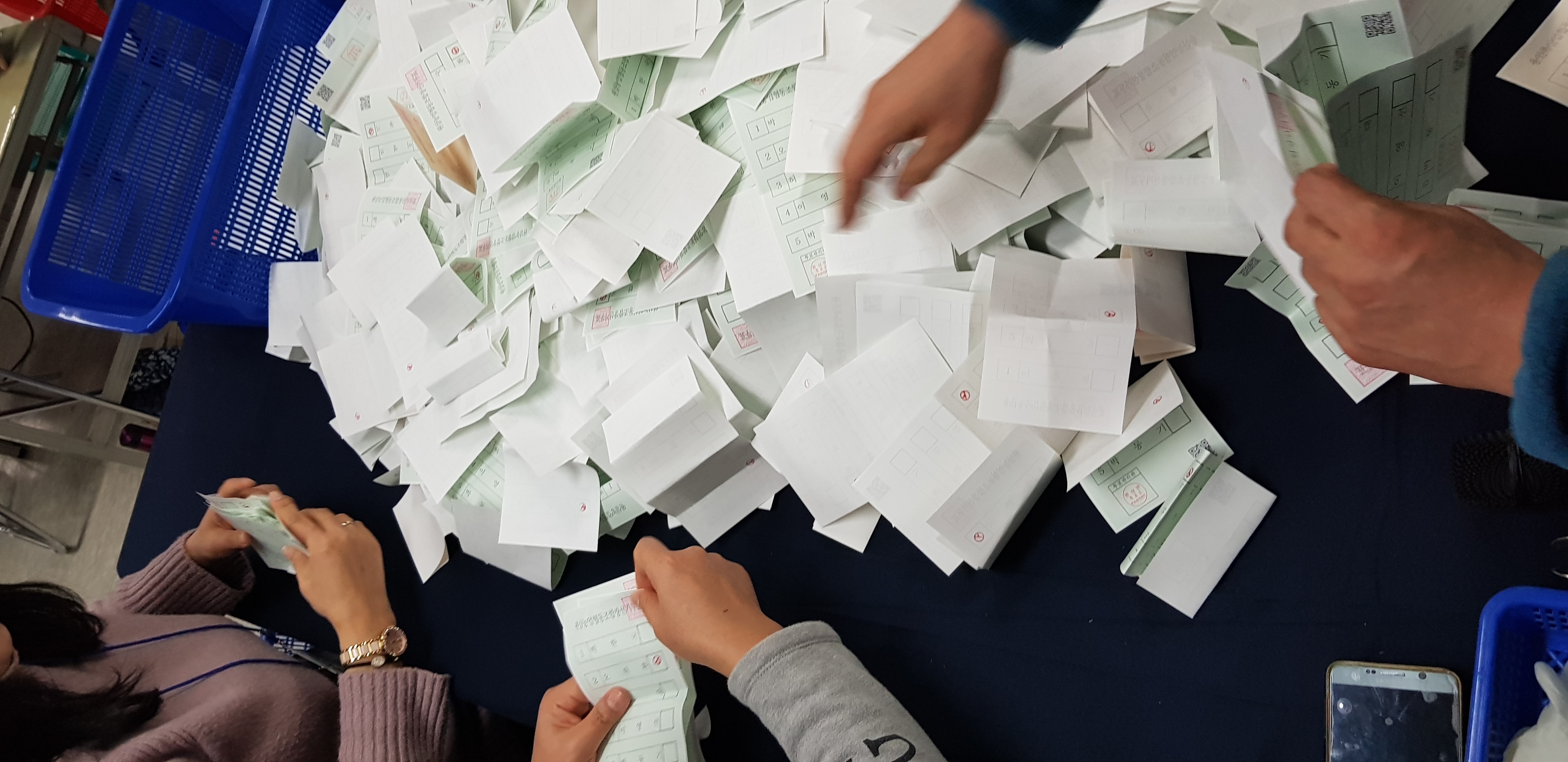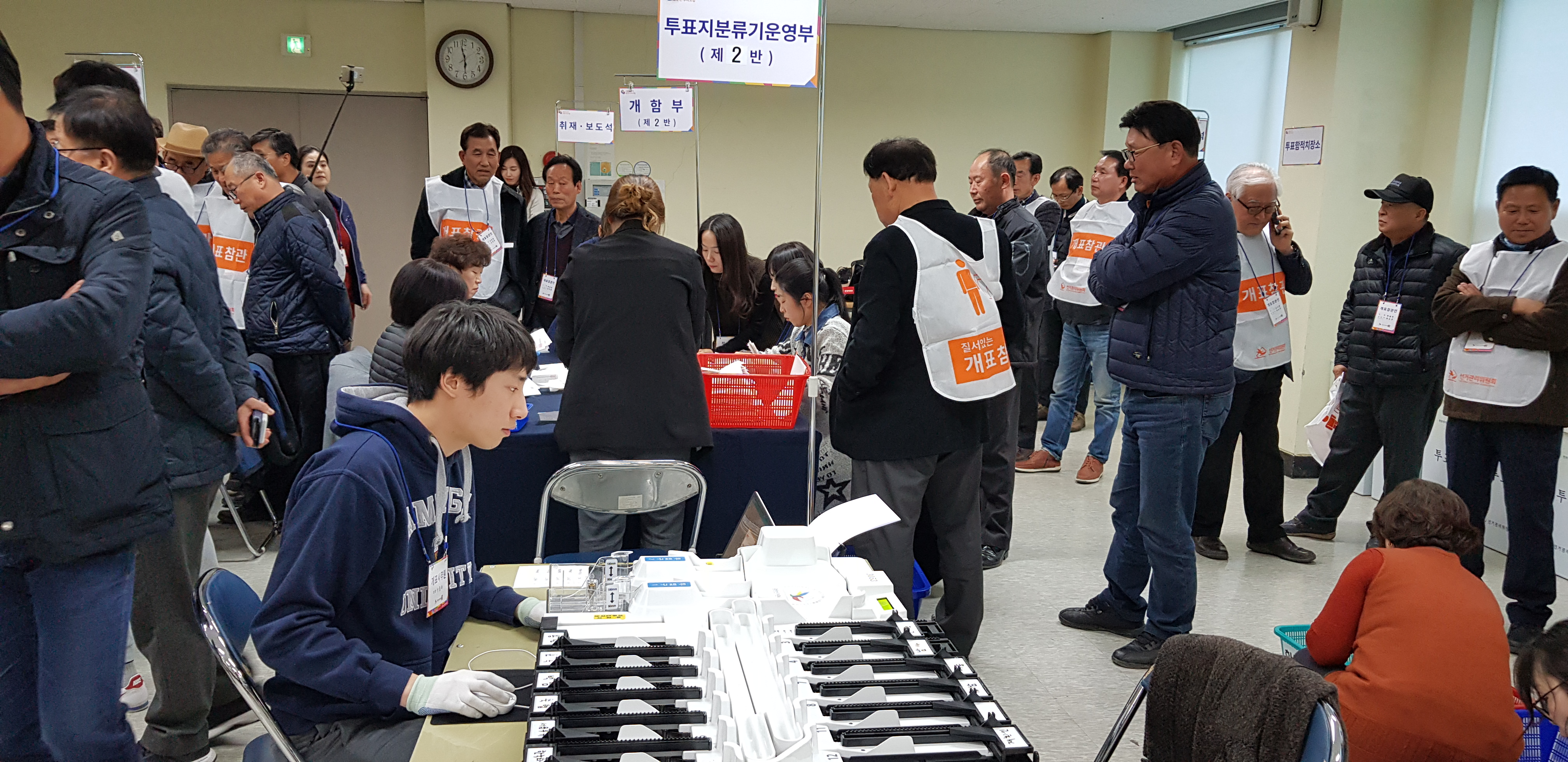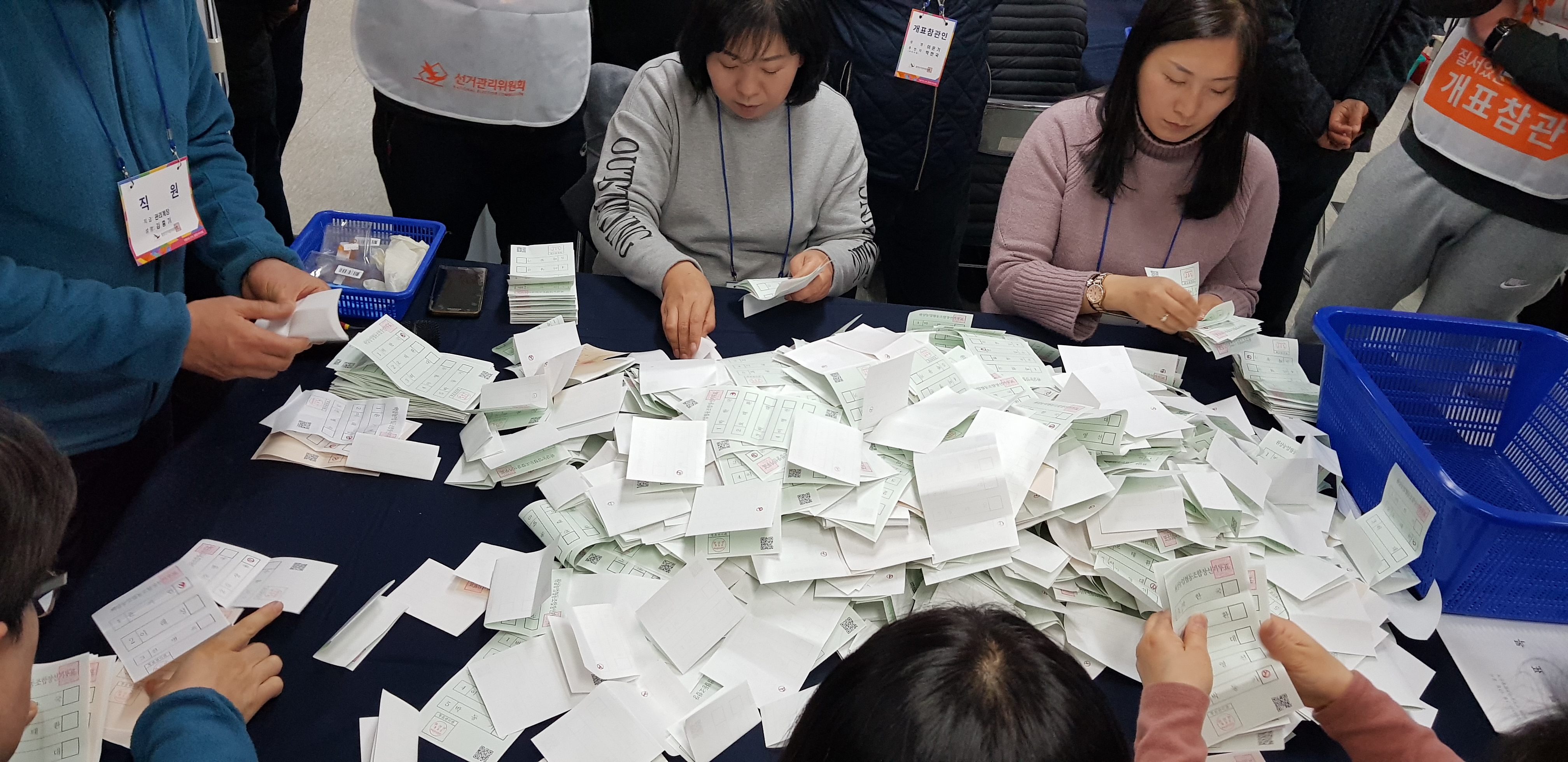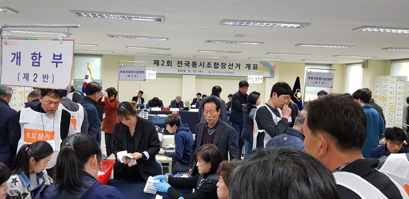 제2회전국동시조합장선거 개표현장에서 생생한 열기를 전합니다.
