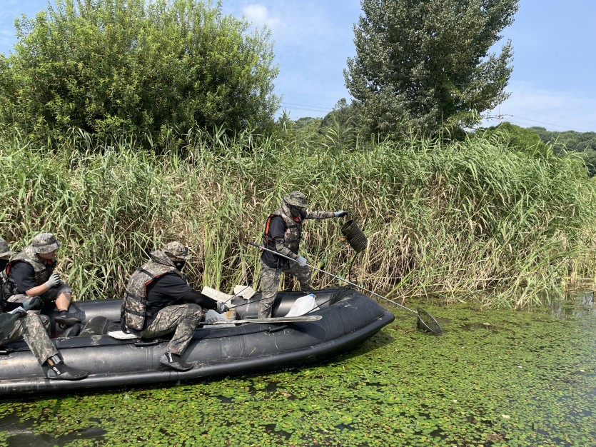 수지구, 육군 수도군단 특공연대와 낙생저수지 환경 정화 - 장병 40여명 고무보트 6대에 올라 빗물에 밀려든 수상 쓰레기 1톤 수거 김경순 기자 2023-08-03 20:27 가 본문내용 확대/축소 본문 수지구, 육군 수도군단 특공연대와 낙생저수지 환경 정화 용인특례시 수지구는 육군 수도군단 특공연대가 동천동 낙생저수지에서 수상 쓰레기 1톤을 수거하는 등 환경 정화 활동을 펼쳤다고 3일 밝혔다. 김준혁 중령을 비롯한 40여명의 육군 수도군단 특공연대 장병들은 6대의 고무보트에 나눠 탄 채 저수지 구석구석을 파고들며 뜰채와 집게로 물에 떠 있는 나뭇가지와 쓰레기를 꼼꼼하게 수거했다. 구는 이들이 수거한 쓰레기를 용인환경센터로 옮기는 한편 저수지 주변에 방치된 쓰레기도 깨끗하게 치웠다. 김 중령은 “주민들이 안전하고 쾌적하게 생활할 수 있도록 지난 5월에 이어 추가로 낙생저수지 일대 환경 정화를 진행했다”며 “앞으로도 집중호우에 취약한 저수지 환경 정화 봉사를 확대해 지역과 상생하는 군이 되도록 노력하겠다”고 말했다. 구 관계자는 “지난달 장마로 많은 비가 내리면서 낙생저수지에 부유물이 쌓였는데 육군 수도군단 특공연대가 봉사를 해줘 감사하다”며 “주민들이 안심하고 생활할 수 있도록 낙생저수지를 비롯한 침수 취약지역을 지속적으로 관리하겠다”고 말했다. 좋아요 0 싫어요 0 김경순 기자 기자의 다른기사 보기 목록 댓글목록 이전글 용인특례시, 중소기업 지원 위해 재능 나눔한 기관에 감사장 수여3 23.08.03 다음글 용인특례시, 고용노동부 전국 지자체 일자리대상 ‘우수상’ 23.08.03