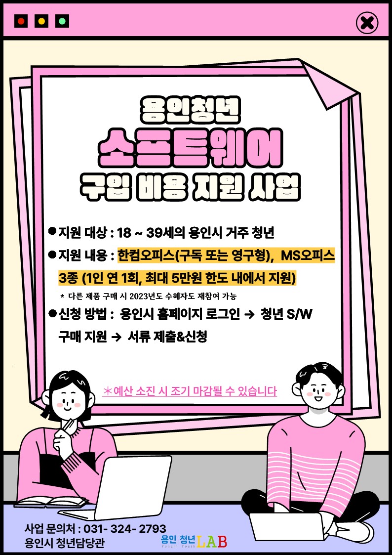 용인특례시, 청년세대 소프트웨어 구입 비용 1인당 최대 5만원 지원 - 한컴오피스(6종)‧MS오피스(3종) 구매 지원 총 3000만원 예산 마련 - - 청년들의 구직활동 지원과 경제적 이유로 사용하는 불법복제 소프트웨어 근절 효과 기대 김경순 기자 2024-01-29 06:00 가 본문내용 확대/축소 본문 용인특례시, 청년세대 소프트웨어 구입 비용 1인당 최대 5만원 지원 용인특례시(시장 이상일)는 청년들의 구직활동과 자기 계발을 돕고 경제적 이유로 불법 복제 프로그램을 사용하는 것을 방지하기 위해 소프트웨어 구입비를 1인당 최대 5만원까지 지원한다고 29일 밝혔다. 지원 대상은 시에 주민등록을 둔 18세 이상 39세 이하 청년이다. 시는 한컴오피스(6종)와 MS오피스(3종) 등 가정용·학생용 프로그램을 구입한 청년들을 위해 총 3000만원의 예산을 마련했다. 지난해 한컴오피스를 구입해 지원금을 받은 청년이 올해 MS오피스를 구입한 경우라면 MS오피스 구입비를 받을 수 있다. 한컴오피스를 영구 사용하려면 6만 3000원대, MS오피스는 17만 9000원을 지불해야 한다. 참여를 원하는 청년은 최근 1개월 안에 발급된 주민등록 초본과 소프트웨어 구입 영수증, 제조사 홈페이지 제품등록 화면 캡처본 등을 구비해 시 홈페이지(https://www.yongin.go.kr/)에서 신청하면 된다. 시는 신청자를 취합해 익월에 지원금을 일괄 지급한다. 시 관계자는 “대학에서 재학생을 위해 정품 사용권을 할인해 주기도 하지만 이미 졸업한 취업준비생들은 직접 사용권을 구입해야 해 경제 부담을 덜어주기 위해 구입비를 지원한다”며 “앞으로도 청년의 구직활동에 실질적으로 도움이 되는 지원을 이어가겠다”고 말했다. 시는 지난 2022년 청년네트워크 제안을 받아들여 전국 지자체 가운데 처음으로 청년 소프트웨어 구입비 지원 사업을 시작했다. 2022년 738명에게 3600만원, 지난해엔 611명에게 2977만원을 지원했다. 좋아요 0 싫어요 0 김경순 기자 기자의 다른기사 보기 목록 댓글목록 이전글 용인특례시, 아동의 권리 증진과 정책 제안 역할 ‘제6기 아동참여위원’ 모집 24.01.29 다음글 용인특례시, 공동주택 보조금 전년 대비 17.6% 늘어난 27억원 지원 24.01.29