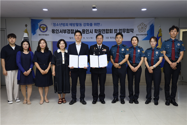 용인서부경찰서(서장 김병록)는 2024. 9. 12.(목) 10:30경 경찰서에서 청소년범죄 예방활동 강화를 위한 용인서부경찰서-용인시 학원연합회 間 업무협약을 체결했다고 밝혔다.