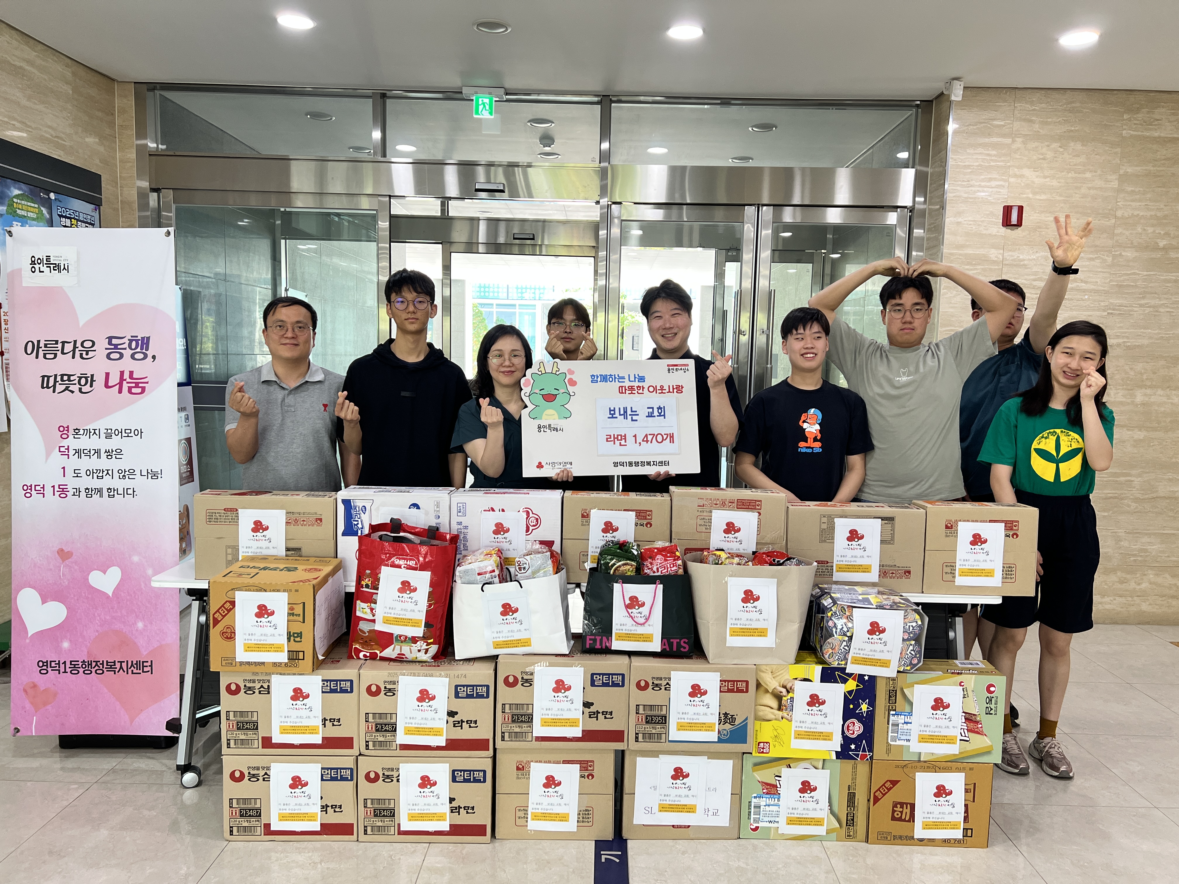 기흥구 영덕1동은 12일 보내는 교회(담임목사 김승범)로부터 관내 취약계층을 위한 라면 1,470개를 기탁받았다고 밝혔다.