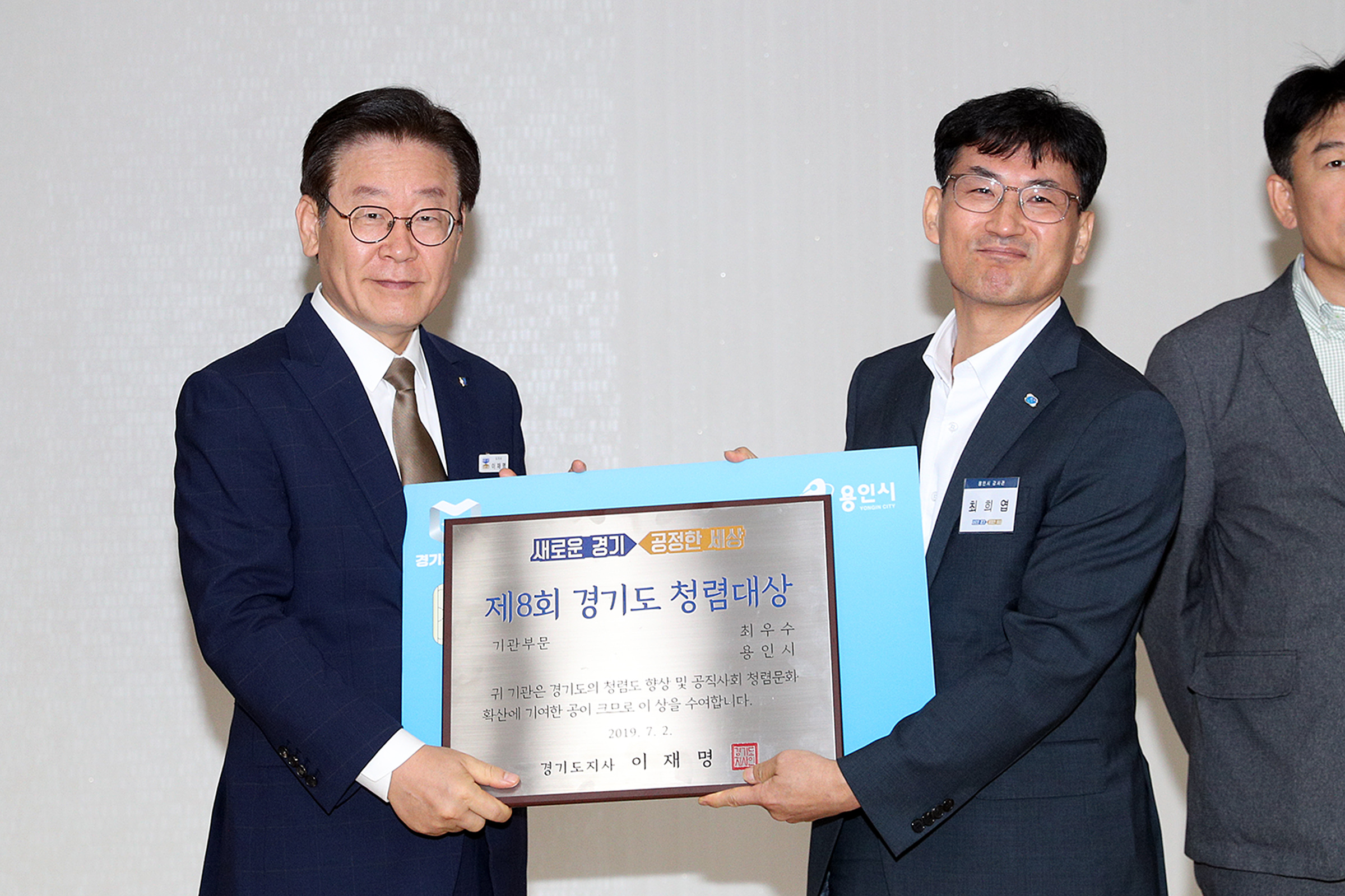 경기도 청렴대상서 최우수상 수상 용인시, 권익위 ‧ 감사원 청렴평가서 도 위상 제고한 점 높은 평가 김경순 기자 2019-07-03 10:58 가 본문내용 확대/축소 본문 경기도 청렴대상서 최우수상 수상경기도 청렴대상서 최우수상 수상 용인시는 2일 열린 경기도 공감소통의 날 행사에서 ‘제8회 경기도 청렴대상’의 최고상인 최우수상을 수상했다고 밝혔다. 도는 공직사회에 청렴문화를 확산하기 위해 매년 부패방지 ‧ 청렴도 향상 기여도를 평가하는 청렴대상을 수여하고 있다. 이번 평가에서 시는 ‘2018년도 부패방지 시책평가’서 도내 50만 이상 기초지자체 중 유일하게 1등급인 최우수상을 수상하는 등 정부의 청렴관련 각종 심사평가서 모두 우수한 평가를 받아 도 위상을 높인 점에서 좋은 점수를 받았다. 시 관계자는“공직자들이 반부패 청렴윤리 활동에 앞장서 원칙과 정의를 지키기 위해 노력한 결과”라며 “이번 수상결과에 안주하지 않고 앞으로도 청렴문화 확산을 위해 노력할 것”이라고 말했다. 좋아요 0 싫어요 0 김경순 기자 기자의 다른기사 보기 목록 댓글목록 이전글 의원연구단체 「용인발전연구회 용인愛(애)」, 도시브랜드와 스토리 만들기 세미나 개최 19.07.03 다음글 용인시디지털산업진흥원, 창업진흥원 주관 ‘2019년 멘토링플랫폼 운영지원’사업 추진 간담회 개최 19.07.03