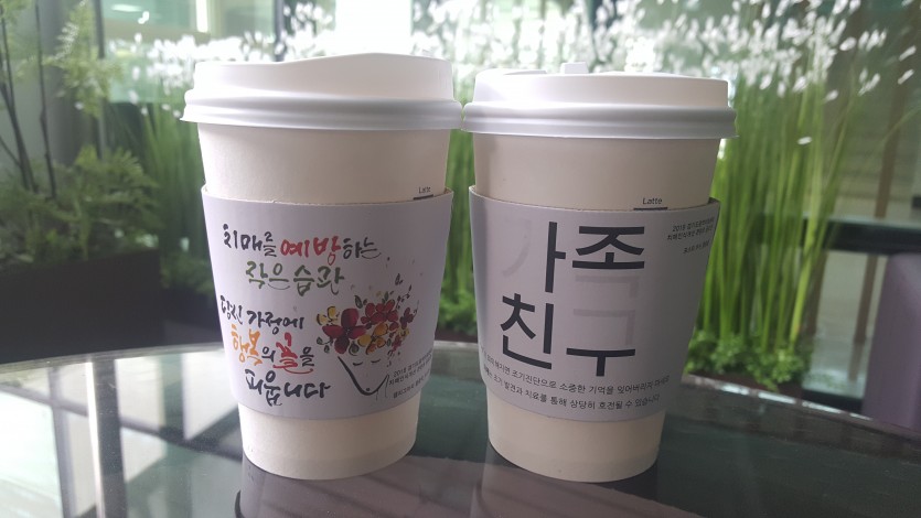 음료매장에서 사용하는 컵홀더, 스티커 등을 활용해 주민들에게 치매에 대한 올바른 정보를 전달하기 위해서다.