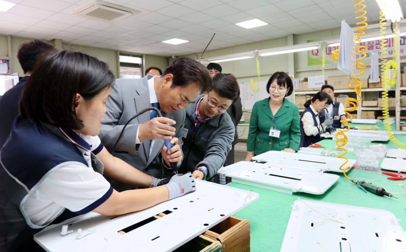 백군기 용인시장, 성만원서 근로장애인 애로사항 청취 “시민들에게 희망의 빛 선물한다는 자긍심 갖고 일 하길…” 김경순 기자 2019-09-25 21:07 가 본문내용 확대/축소 본문 백군기 용인시장, 성만원서 근로장애인 애로사항 청취백군기 용인시장, 성만원서 근로장애인 애로사항 청취 백군기 용인시장은 25일 처인구 백암면 장애인직업재활시설 성만원을 찾아 근로장애인과 훈련생을 격려하고 애로사항을 청취했다. 이번 방문은 지난 8월 시청 로비서 열린 중증장애인 생산품 전시회에서 성만원 관계자가 백 시장을 초대해 이뤄졌다. 이날 백 시장은 장애인들과 함께 LED 조명을 만들면서 제품을 어떻게 조립하는지 설명을 듣고 어려운 여건 속에서도 열심히 일하는 장애인들을 격려했다. 백 시장은 “현장에서 직접 체험해보니 장애인이 만들었다는 선입견이 무색할 만큼 훌륭한 제품”이라며 “여러분이 만든 조명으로 시민들에게 밝은 희망을 선물한다는 것에 자긍심을 가지라”고 말했다. 이어 이들이 만든 조명을 관내 가로등 시설 등에 사용하는 방안을 모색하는 등 장애인이 경제적으로 자립할 수 있도록 다양한 지원을 할 것을 주문했다. 한편, 지난 2013년 개원한 성만원은 현재 21명의 근로장애인과 1명의 훈련생이 LED 조명과 CCTV를 생산하고 있다. 좋아요 0 싫어요 0 김경순 기자 기자의 다른기사 보기 목록 댓글목록 이전글 “학생들이 마음껏 꿈 펼치도록 적극 지원할 것” 19.09.26 다음글 용인시, 올해 7급 승진자 대상 셀프리더십 교육 19.09.25