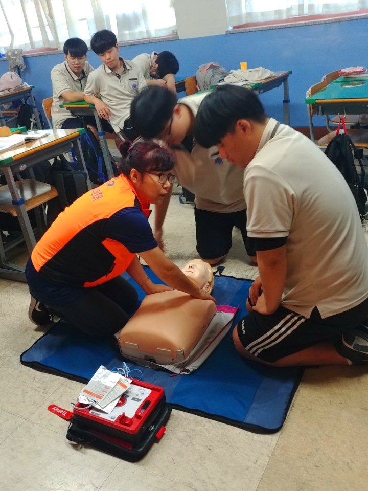 용인 의용소방대, 관내 학생 대상 응급처치교육 실시 용인지역 유치원, 초·중·고 학생 대상 응급처치교육으로 안전문화 확산 위해 노력 김경순 기자 2019-09-26 23:27 가 본문내용 확대/축소 본문 용인 의용소방대, 관내 학생 대상 응급처치교육 실시용인 의용소방대, 관내 학생 대상 응급처치교육 실시용인 의용소방대, 관내 학생 대상 응급처치교육 실시 용인소방서(서장 이경호)는 심폐소생술 강사 자격증을 보유한 의용소방대원 24명을 교육반으로 편성하여 관내 학생들을 대상으로 응급처치교육을 진행하고 있다고 밝혔다. 이번에 실시하는 응급처치교육은 용인지역 내 유치원 및 초·중·고등학생을 대상으로 심정지 환자 발생 시 뇌손상을 막을 수 있는 골든타임 4분의 중요성을 알리고 구급대원이 도착하기 전 신속하고 정확한 초기응급처치를 할 수 있도록 하여 응급상황에 대처할 수 있는 능력을 기르기 위해 진행되고 있다. 현재까지 갈곡초 등 10여개 학교를 대상으로 36회, 900여명에게 심폐소생술의 중요성과 처치 방법 등의 교육을 진행하였으며, 교육을 받은 학생들의 응급처치 능력과 정확한 심폐소생술로 생명을 구할 수 있다는 학생들의 자신감이 상승한 것은 물론 전문교육을 받은 의용소방대원의 체계적이고 전문적인 교육으로 만족도 또한 높은 것으로 나타났다. 이경호 서장은 “심정지 환자는 최초 발견자에 의한 신속한 응급처치가 환자의 생사여부를 결정한다”며 “연령별 수준에 맞는 맞춤형 교육을 통해 학생들의 응급처치 능력이 향상 될 수 있도록 최선의 노력을 다하겠다”고 전했다. 좋아요 0 싫어요 0 김경순 기자 기자의 다른기사 보기 목록 댓글목록 이전글 무인 스마트도서관 5호점 보정동 주민센터에 오픈 19.09.26 다음글 용인시디지털산업진흥원, 2019 제8회 소공인 CEO 세미나 개최 19.09.26