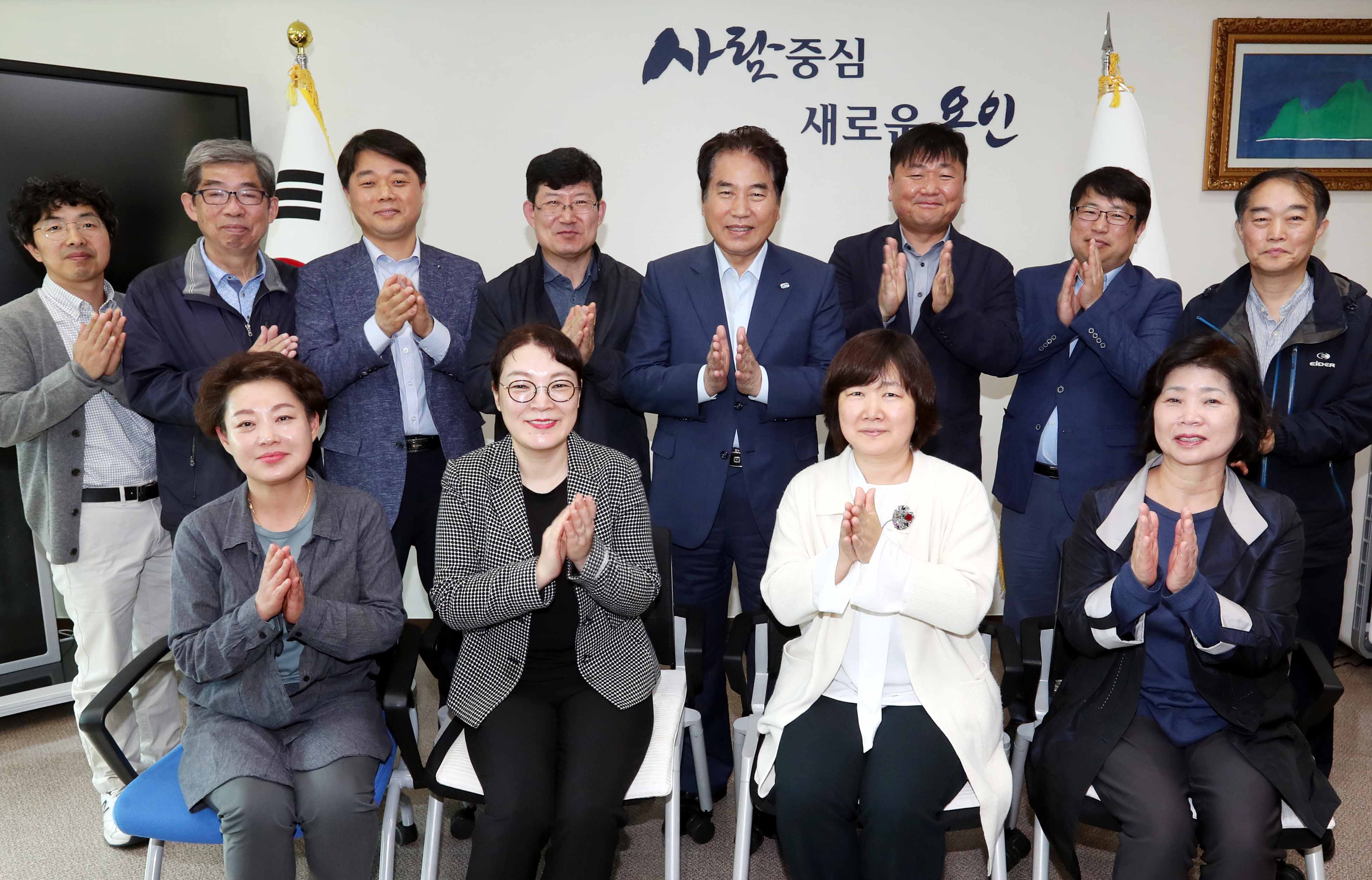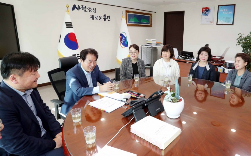 백군기 용인시장은 22일 시장실서 용인시서점협동조합 관계자 11명을 만나 지역서점의 상생 방안을 논의하고 저소득 청소년 독서 지원을 격려했다.