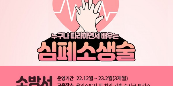 용인소방서(서장 서승현)는 내년 1월부터 2월 말까지 처인구․기흥구․수지구 보건소와 용인소방서에서 상설 심폐소생술 교육장을 운영한다고 밝혔다. 이번 심폐소생술 교육장은 지난 10월 발생한 이태원 참사 이후 심폐소생술 및 응급처치 교육에 대한 시민들의 관심과 교육 요청이 급증하여, 많은 시민들이 응급상황에 대처할 수 있도록 이론과 실습 교육으로 진행된다. 교육은 1시간 동안 진행되며 성인 심폐소생술 및 자동심장충격기 사용…