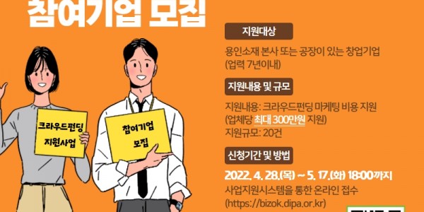 용인시산업진흥원, 초기창업자 자금유치 돕는 크라우드펀딩 지원사업 추진