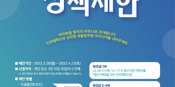 용인시가 시민과 함께 지역사회 문제를 고민하고 해법을 마련하기 위해 시민 의견 수렴에 나섰다. 용인시는 행정기관이 주도적으로 정책을 결정하는 방식을 벗어나 시민들이 생각하는 지역사회 문제를 시민들과 함께 효과적으로 해결하기 위해 오는 28일부터 다음달 23일까지 협치 정책이나 의제를 접수한다고 24일 밝혔다. 용인시민이라면 누구나 생활 속에서 불편을 느낀 점을 해결하기 위한 정책이나 의제를 제안할 수 있으며, 3인 …