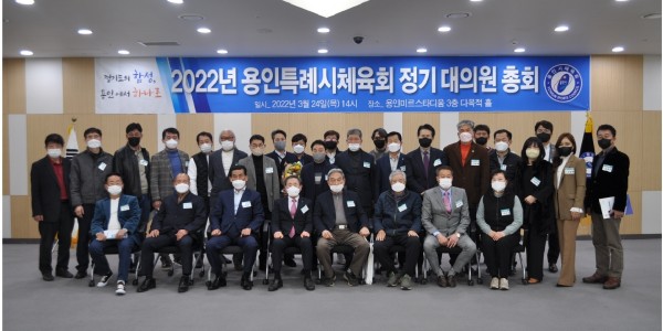 용인특례시체육회(회장 조효상)는 2022년 3월 24일(목) 14시에 용인미르스타디움 3층 다목적홀에서 2022년 용인특례시체육회 정기 대의원총회를 개최하였다. 이날 대의원총회에는 조효상 용인특례시체육회장을 비롯해 85명의 재적 대의원 중 48명의 대의원이 참석했다. 이번 대의원총회에서는 2021년 감사보고, 2022년 예산 및 사업계획 보고, 생활체육지도자 무기계약직 전환 보고, 임원 선임 및 변동 보고, 인정…