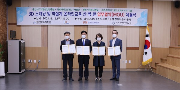 용인시디지털산업진흥원(원장 김윤석, 이하 진흥원)과 경희대학교 LINC+사업단(단장 백운식), 경희사이버대학교(총장 변창구), ㈜쓰리디시스템즈코리아(부사장 정원웅) 4개 기관은 용인 관내 소공인 임직원 및 용인시민과 학생들의 전문성 강화를 위한 ‘3D 스캐닝 및 역설계 온라인 교육’ 프로그램 제작 및 확산, 발전을 위해 8월 12일 기흥구에 위치한 도시형소공인 집적지구 라운지에서 업무협약을 체결했다고 밝혔다. 이번 협약…
