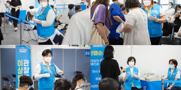 용인시의회 문화복지위원회(위원장 장정순)는 21일 오전 9시 용인미르스타디움에 위치한 처인구 코로나19 예방접종센터에서 자원봉사활동을 실시했다. 이날 장정순 위원장을 비롯해 문화복지위원회 소속 김상수, 이은경, 명지선 의원과 유향금 경제환경위원장 등 5명은 예방접종센터에서 안내를 하고, 접종 대상자들의 안부를 묻는 한편 예방접종 후의 주의사항에 대해 자세히 설명하면서 신속한 예방접종을 지원했다. 장정순 문화복지위원장…