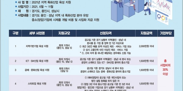 용인시는 27일부터 다음달 17일까지 지역 특화산업 육성 지원사업에 참여할 중소기업 22곳을 모집한다고 밝혔다. 올해 9년째 이어지고 있는 이 사업은 지역 기반기업·첨단정보통신(ICT)· 소프트웨어(SW)·공예‧문화산업·스타트업 등 4개 분야의 도내 유망 기업을 지원하기 위해 시와 경기도, 경기테크노파크, 단국대가 추진한다. 최종 선정된 기업에는 시제품 제작비, 판로개척을 위한 홍보 마케팅비, 기술개발 비용 등 사업…