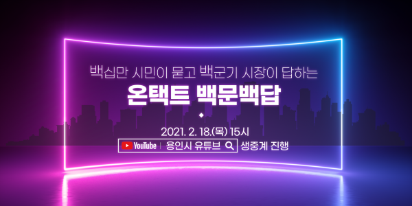 용인시는 오는 18일 오후 3시 ‘백십만 시민이 묻고 백군기 시장이 답하는 온택트 백문백답’을 개최한다고 14일 밝혔다. 이날 용인시 공식 유튜브 채널을 통해 생중계되는 온택트 백문백답은 ‘2021년 시민과의 대화’의 일환으로 마련했다. 이 자리에서는 백 시장이 직접 온라인을 통해 시민들과 시정 방향을 공유하고 이에 대한 진솔한 대화와 의견을 나눈다. 특히 각계각층에서 120여명의 시민들이 화상으로 참여해…