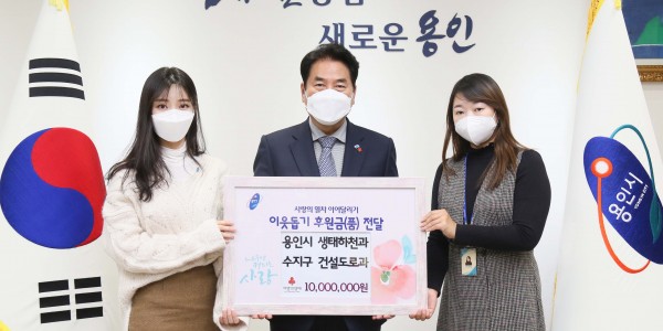 용인시는 14일 시청 생태하천과와 수지구 건설도로과 직원들이 시장실을 방문해 경기도로부터 받은 포상금 1천만원을 어려운 이웃에게 써달라며 기탁했다고 밝혔다. 포상금은 지난해 7월부터 11월까지 수지구 고기동에 위치한 고기리계곡의 불법 시설물을 정비한 공로로 경기도에서 받은 것이다. 이들은 상금을 부서 내 격려금으로 사용하기보다 어려운 이웃에게 나누기로 뜻을 모았다. 시는 이날 전달받은 금액을 경기사회복지모금공…