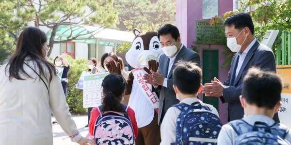 백군기 시장, 성복초‧중 등교생 격려・방역 상황 점검